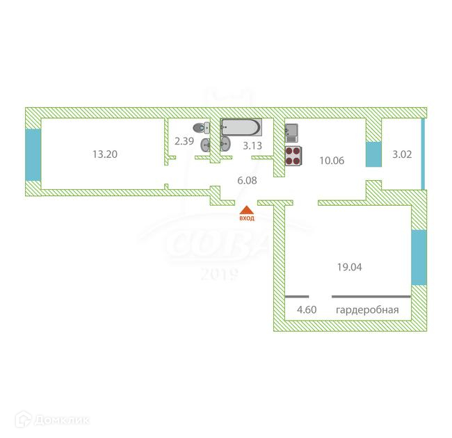 Общая площадь 58.8 м2