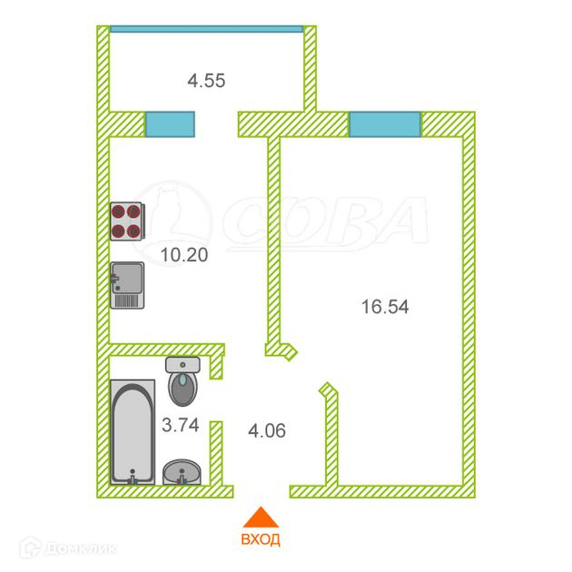 Общая площадь 34.7 м2