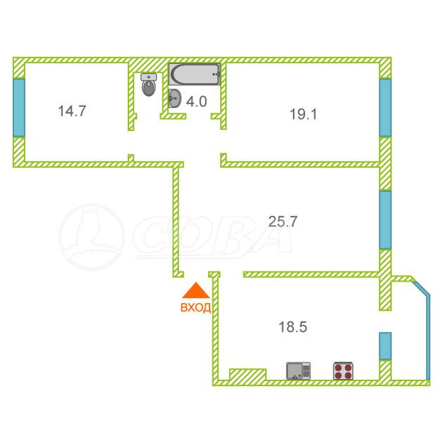 3-комнатная квартира, 85.6 м2, этаж 3 / 14, на продажу в Тюмени, Кремлёвская улица, 85