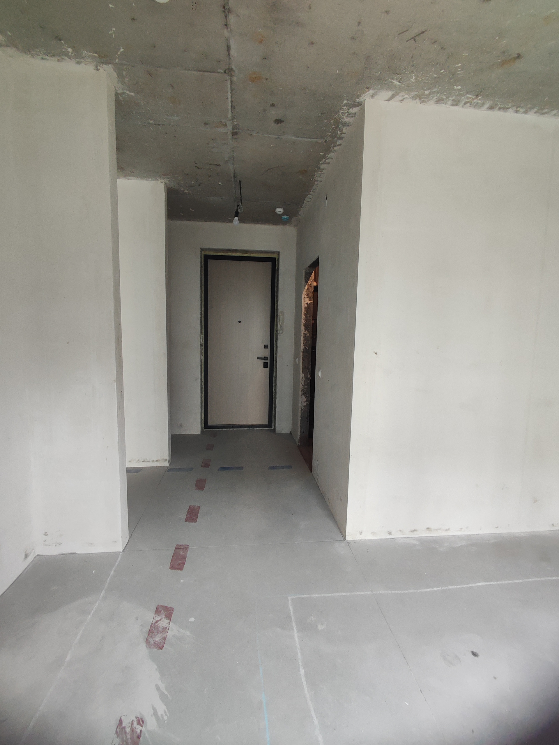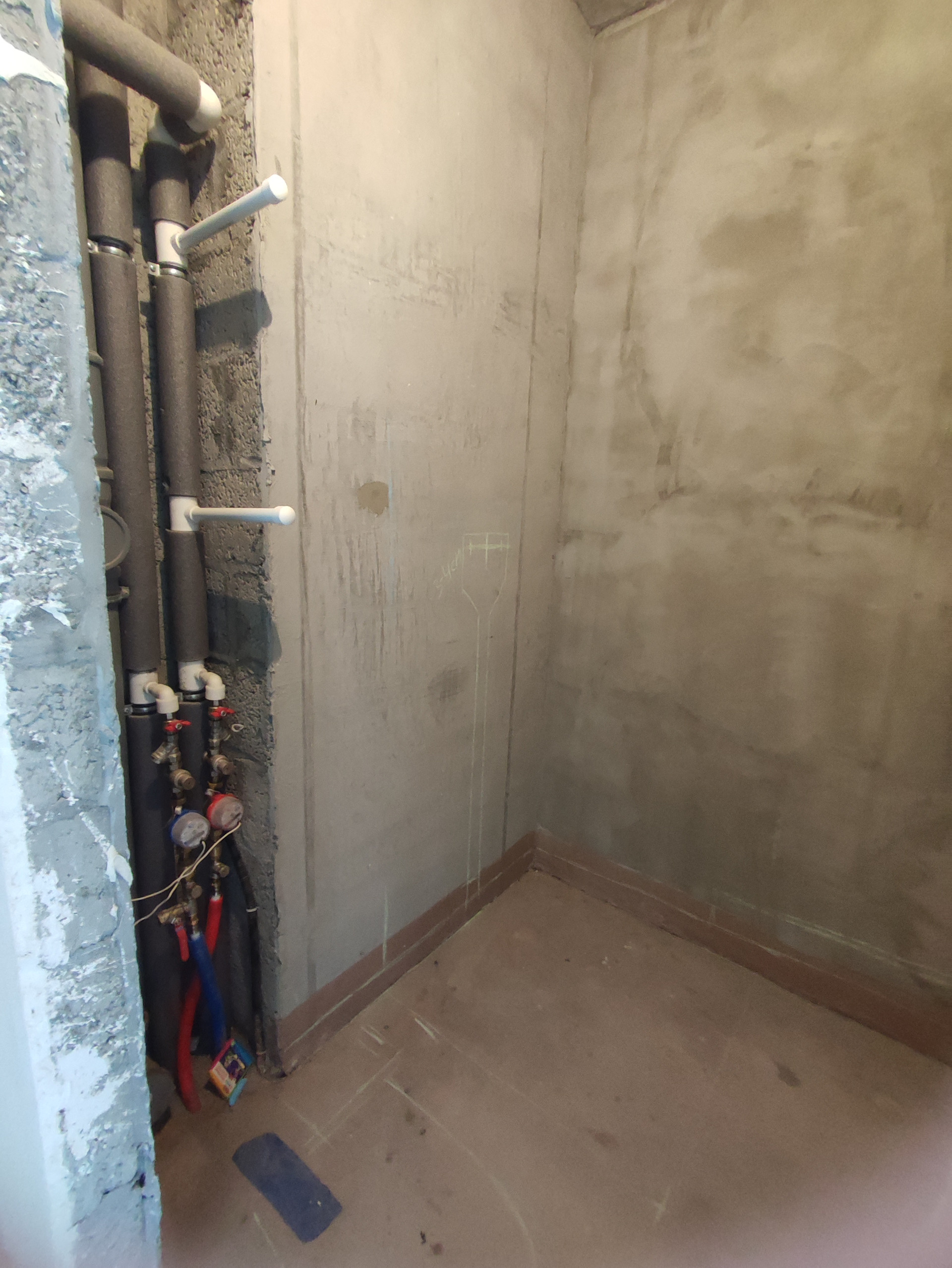 В квартире выполнена улучшенная черновая отделка: стяжка пола, выровненные оштукатуренные стены, счетчики на воду и электричество заведены в квартиру, счетчики теплоснабжения - в коридоре,система телеметрии,все данные передаются в УК автоматически.