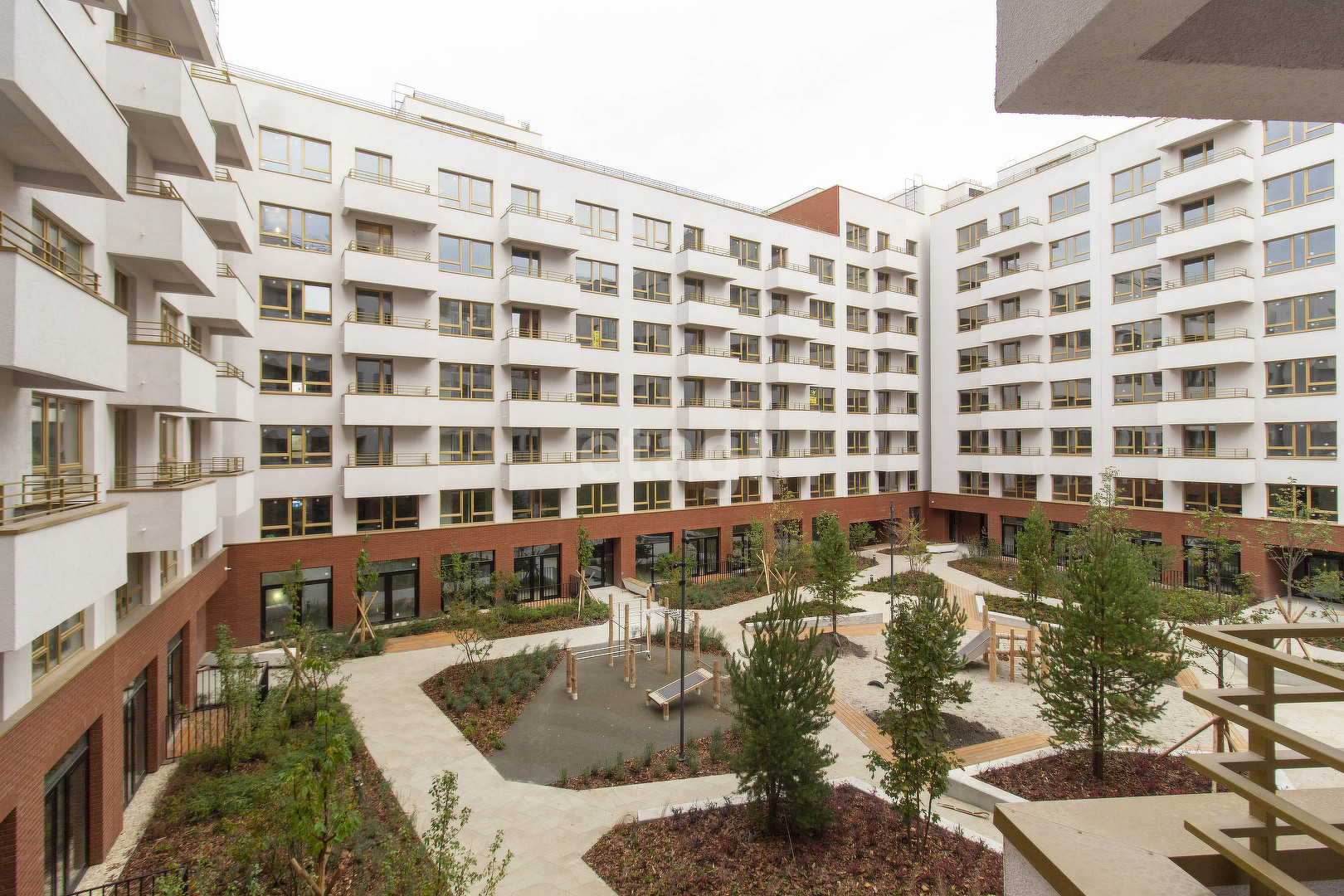 Новый дом в монолитно-каркасном исполнении, недавно выданы ключи. Две комнаты и большая кухня-гостиная площадью почти 30 кв.м, два санузла, тёплая лоджия. Уютный закрытый двор в эко-формате - деревянное оборудование площадок, много зелени -живые изгороди, взрослые деревья.