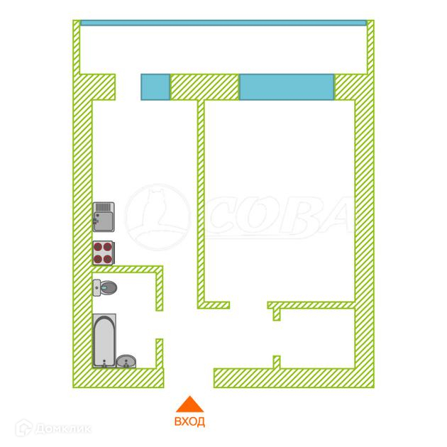 Общая площадь 34.2 м2