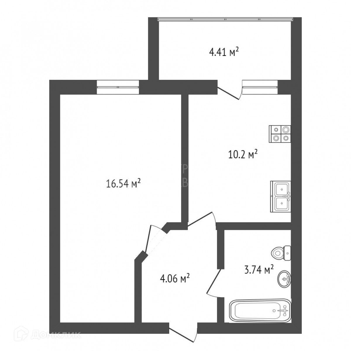 Общая площадь 34.7 м2
