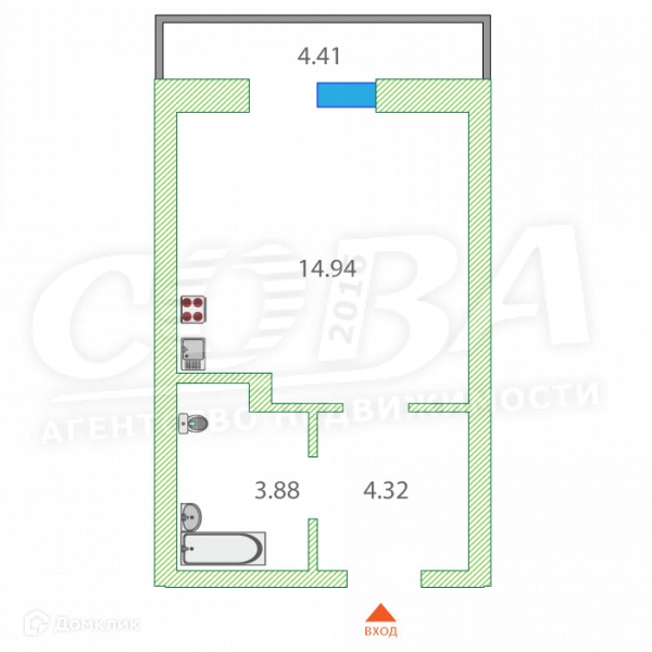Общая площадь 23 м2