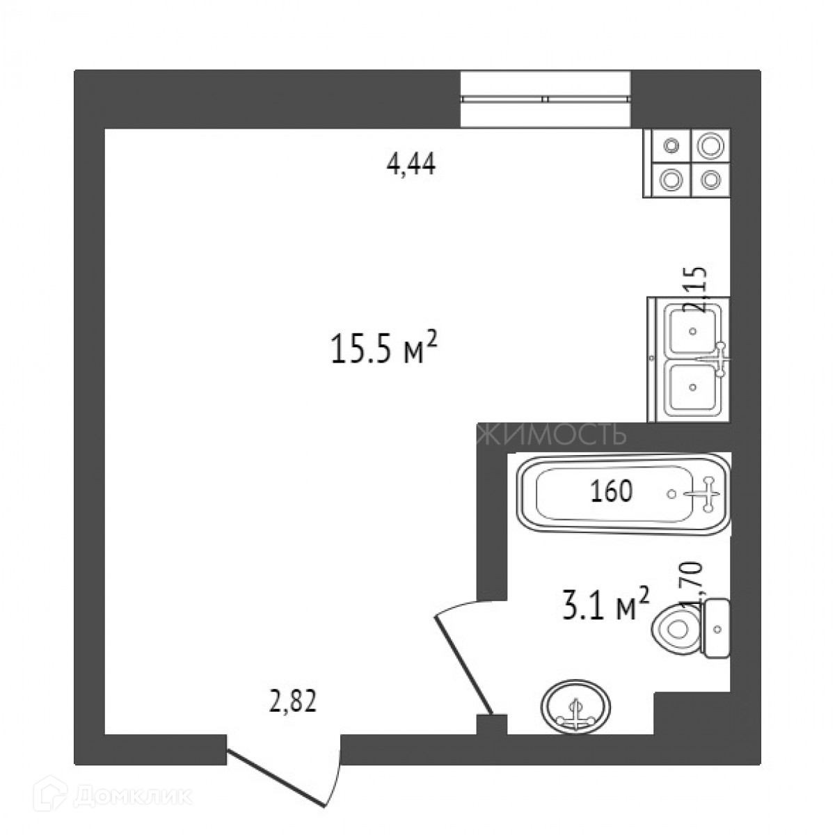 Общая площадь 15.5 м2