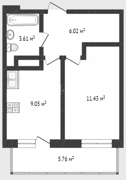 Жилая площадь 11.43 м2