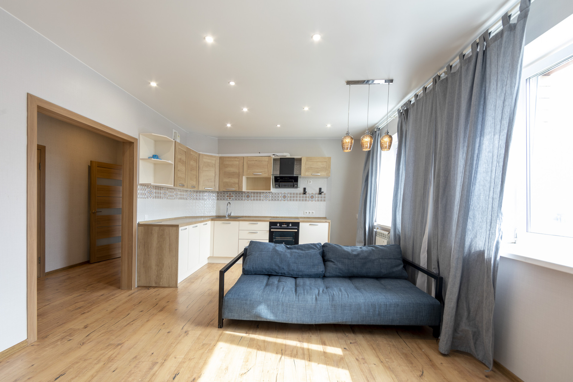 Квартира с современным ремонтом, встроенный кухонный гарнитур, индукционная плита, установлен дополнительный бойлер.  В квартире на полу качественный ламинат,  на  балконе теплый пол, балкон  переоборудован  под кабинет, узаконения не требуется.