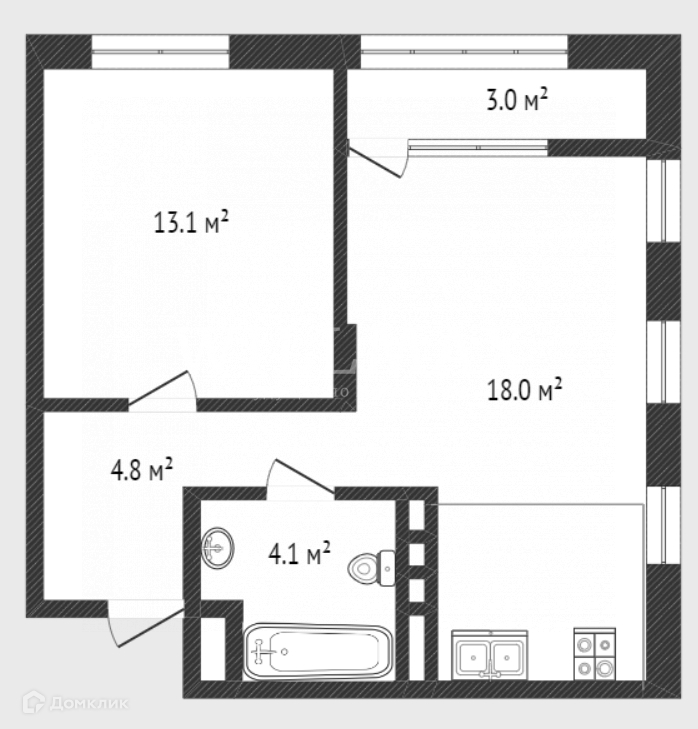 Жилая площадь 19 м2