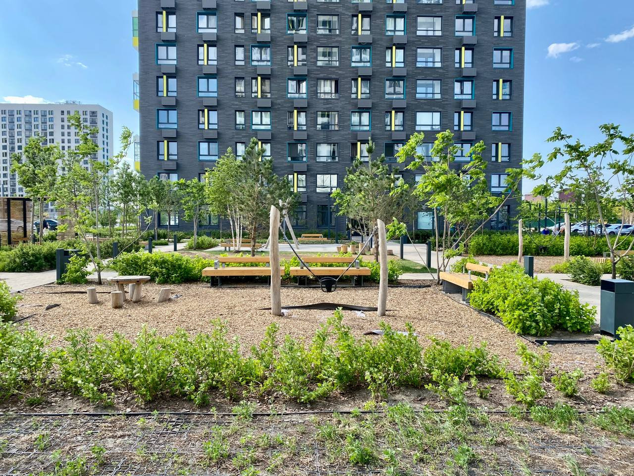 Жилой комплекс состоит из 24-этажных монолитных домов башенного типа, с отличным видом из окна. Современная архитектура — все объекты жилого комплекса выполнены в едином стиле, имеют уникальный дизайн фасадов, благодаря которому в районе легко ориентироваться. Территория ЖК — это зеленый двор без автомобилей, где комфортно гулять и отдыхать от городской суеты. Все пространство занимают деревья и кустарники, игровые площадки, тихие скверы и скамейки, велосипедные дорожки и спортивные зоны. Детские площадки, безопасные и продуманные до мелочей, отлично просматриваются из окон квартир.