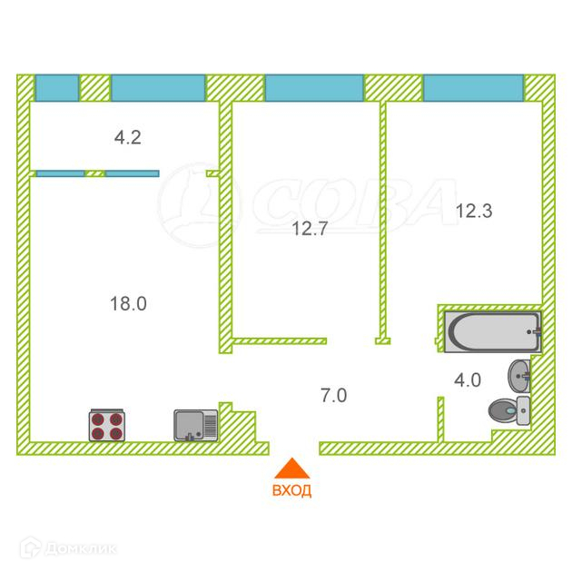 Общая площадь 54 м2