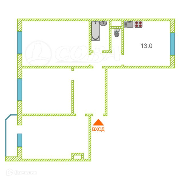 3-комнатная квартира, 85.3 м2, этаж 7 / 14, на продажу в Тюмени, Широтная улица, 172к1