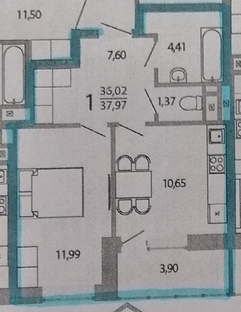 Общая площадь 36.1 м2