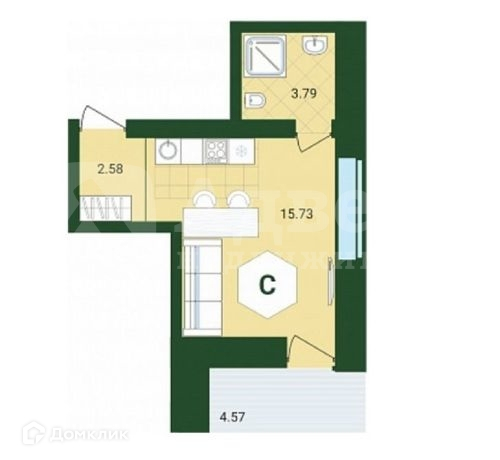 Общая площадь 21.8 м2