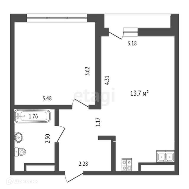Площадь кухни 13.7 м2