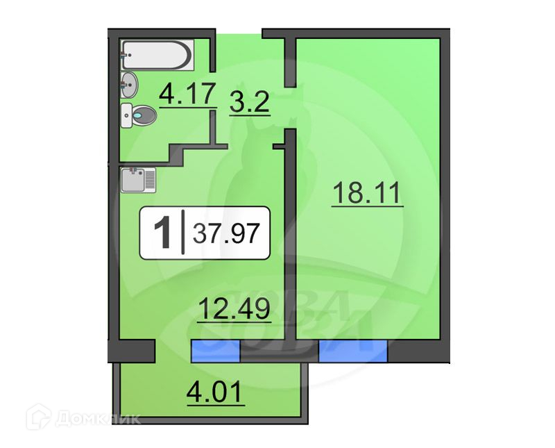 Общая площадь 36 м2