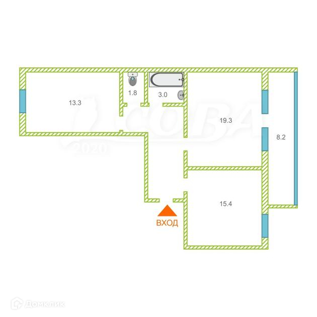2-комнатная квартира, 67 м2, этаж 2 / 9, на продажу в Тюмени, Газопромысловая улица, 2