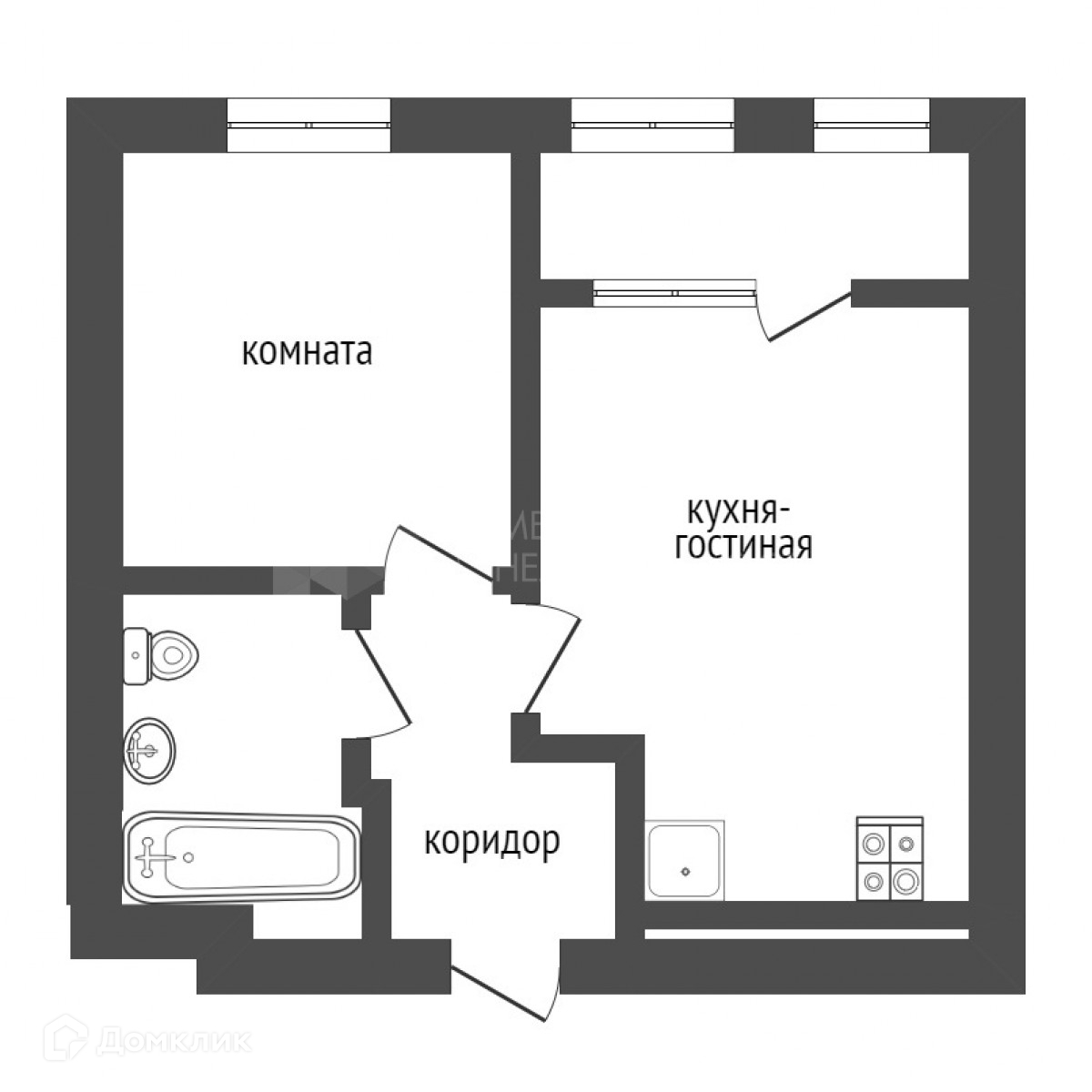 Общая площадь 34.5 м2