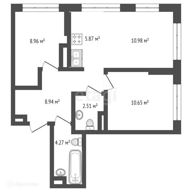 Общая площадь 52.1 м2