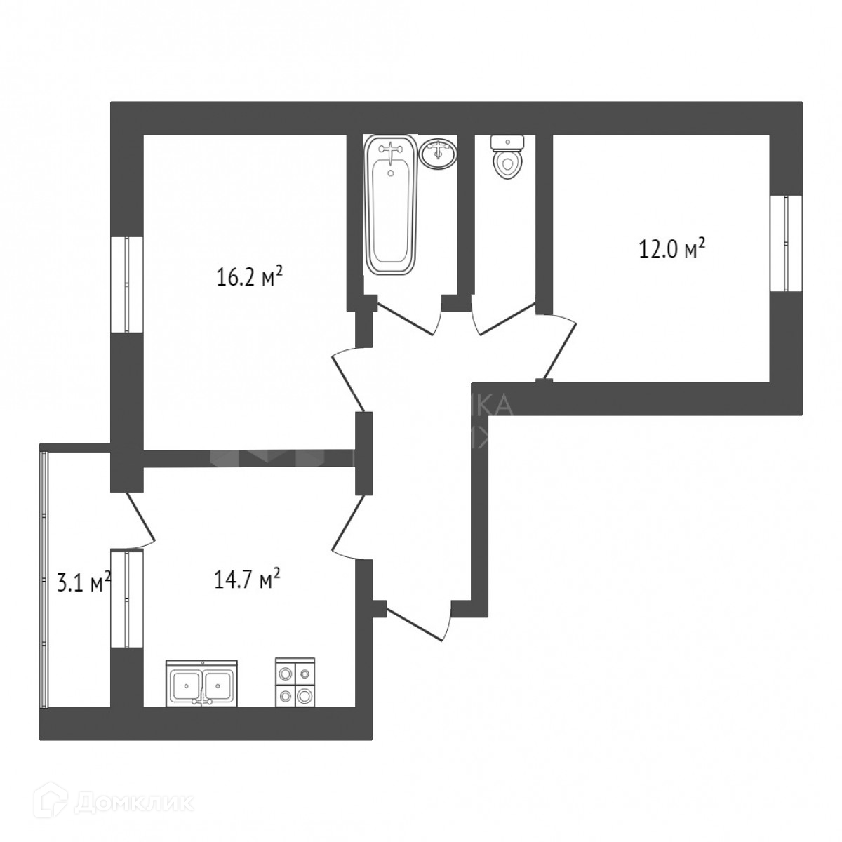 Общая площадь 56.6 м2