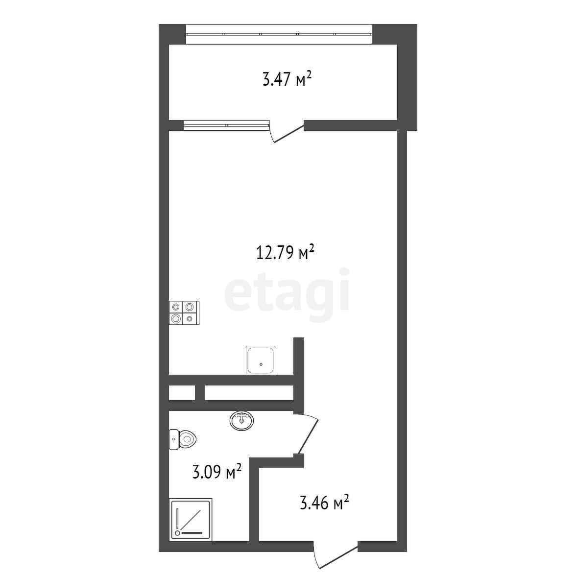 В санузлах – черновая отделка (цементно-песчаная штукатурка), гидроизоляционное покрытие.