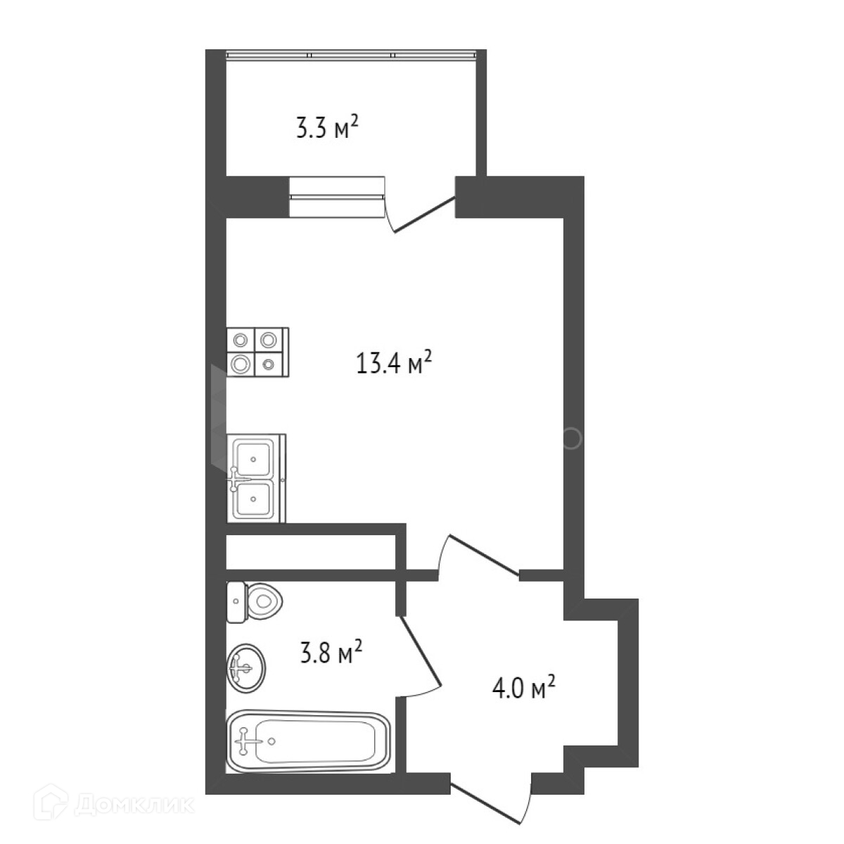 21м2 общей площади плюс балкон 3,3м2.