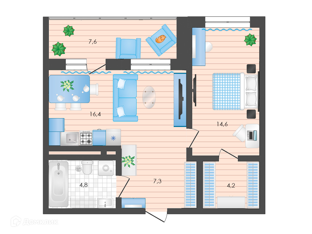 Общая площадь 47.3 м2