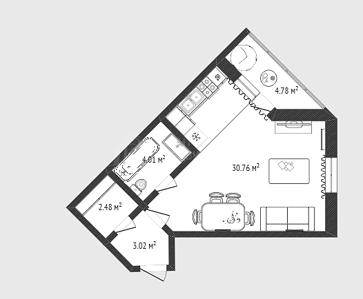 Общая площадь 41.1 м2