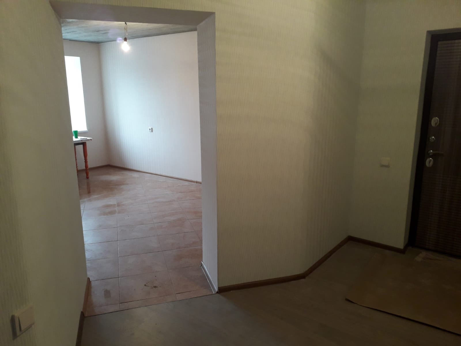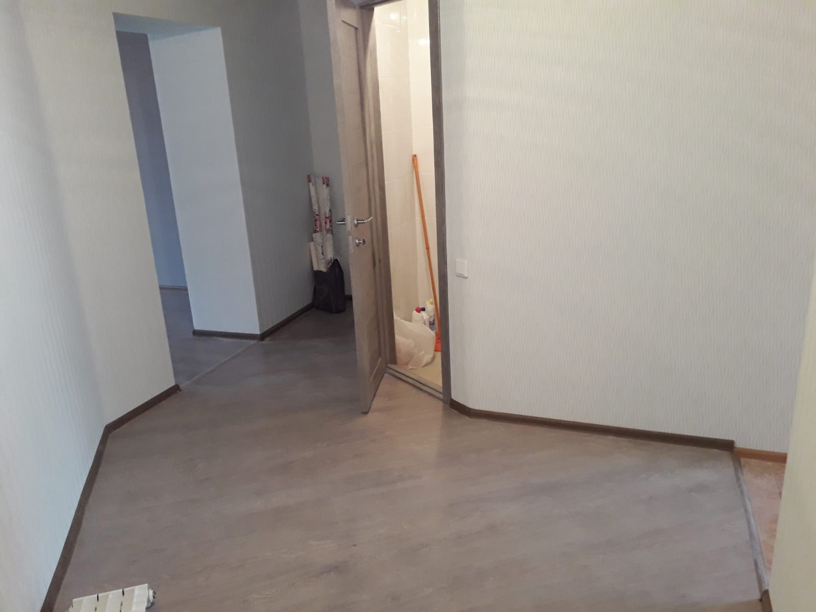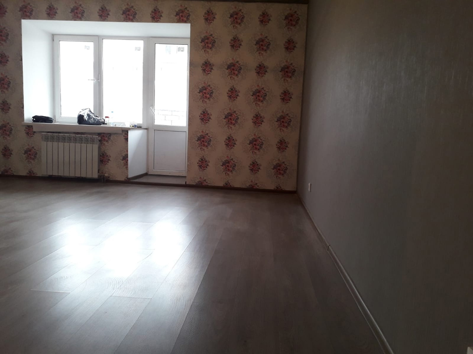 Ремонт из качественных материалов, планировка "распашонка". Балкон застеклен. В кухне-гостиной на полу качественная плитка, в коридоре и комнате- ламинат. На стенах обои, санузел в кафеле, установлены хорошие межкомнатные двери.