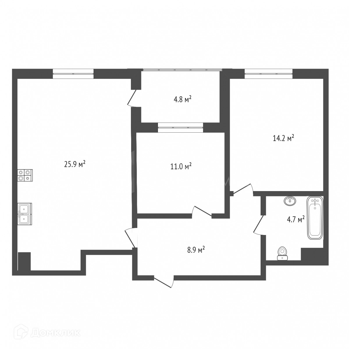 2-комнатная квартира, 64.5 м2, этаж 3 / 4, на продажу в Тюмени, улица Федюнинского, 30к7