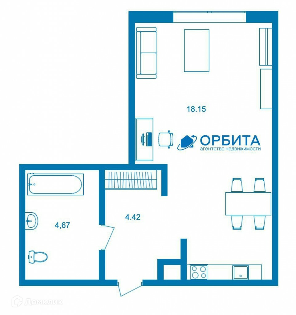 Общая площадь 26.6 м2