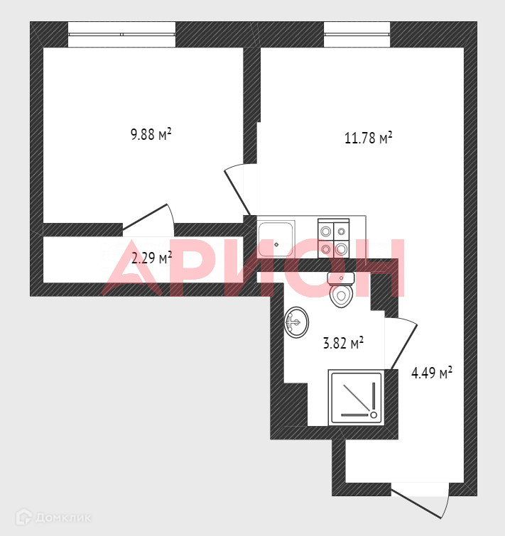 Общая площадь 32.3 м2