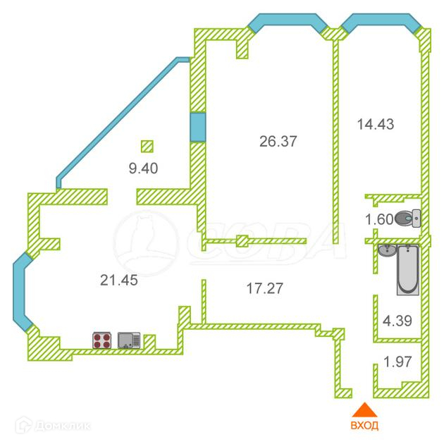 Общая площадь 88 м2