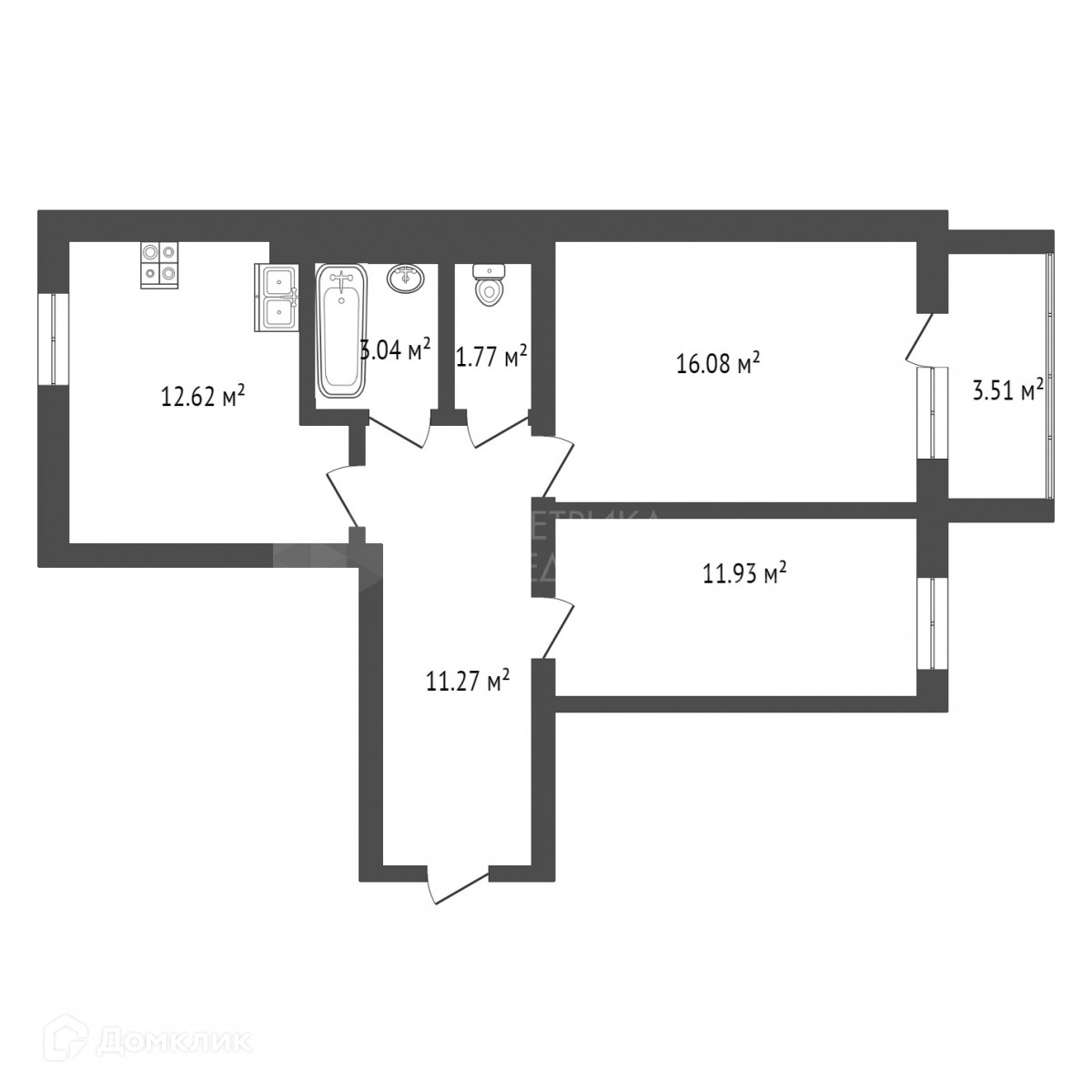 Площадь кухни 12.62 м2