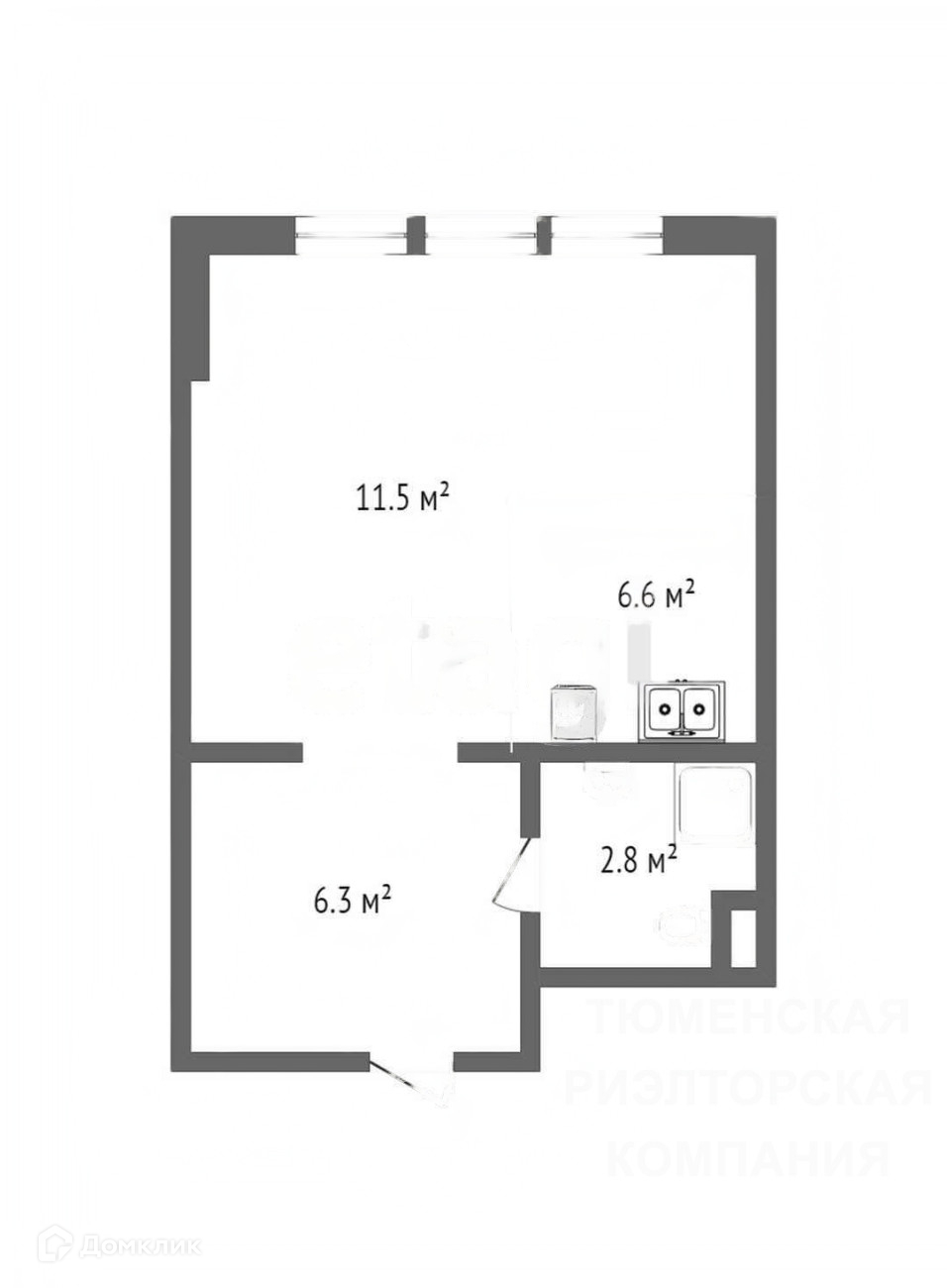 Квартира студия, 27.2 м2, этаж 11 / 25, на продажу в Тюмени, Полевая улица, 117к3