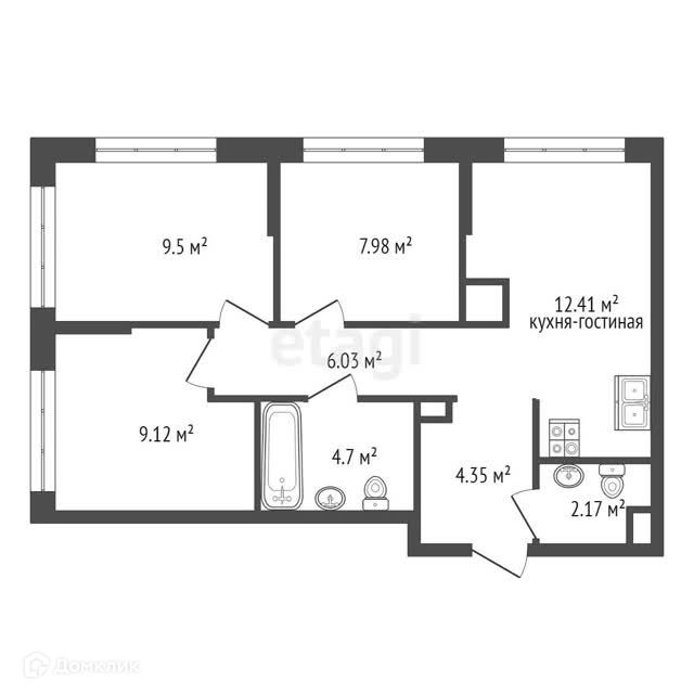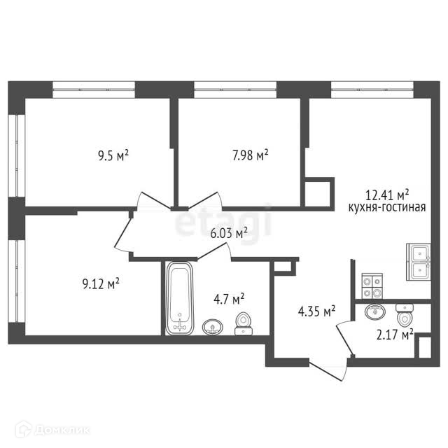 Площадь кухни 12.41 м2