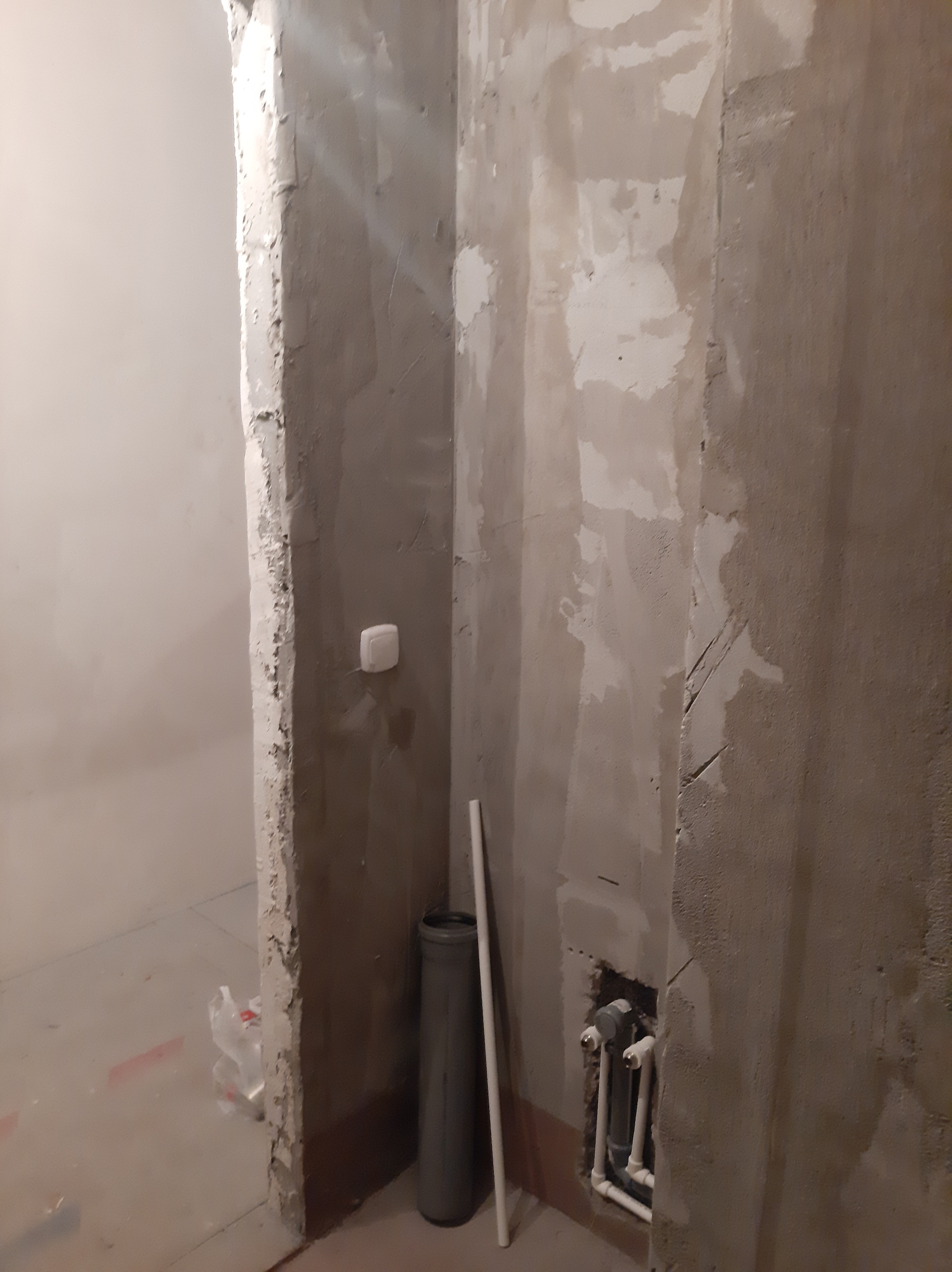 В санузле проводятся ремонтные работы, проведены трубы под водоснабжение и канализацию.