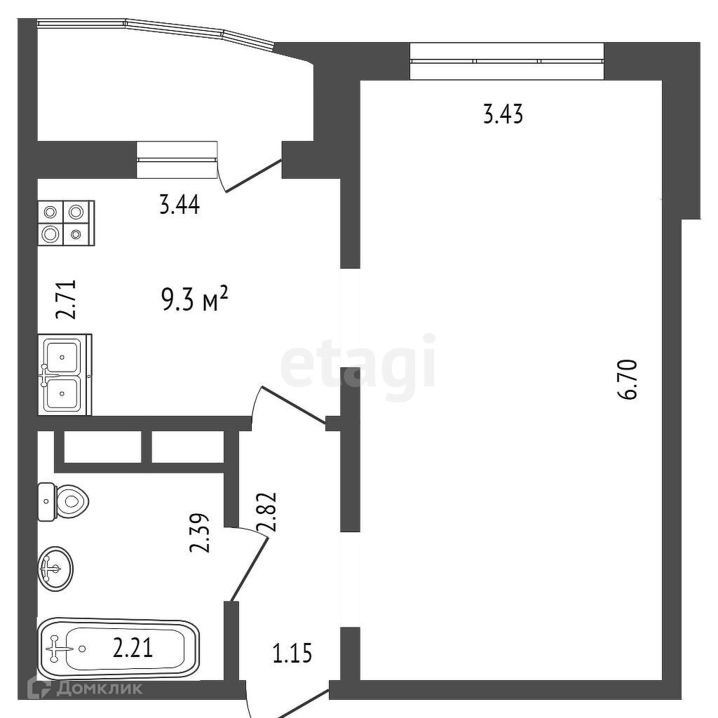 Площадь кухни 9.3 м2
