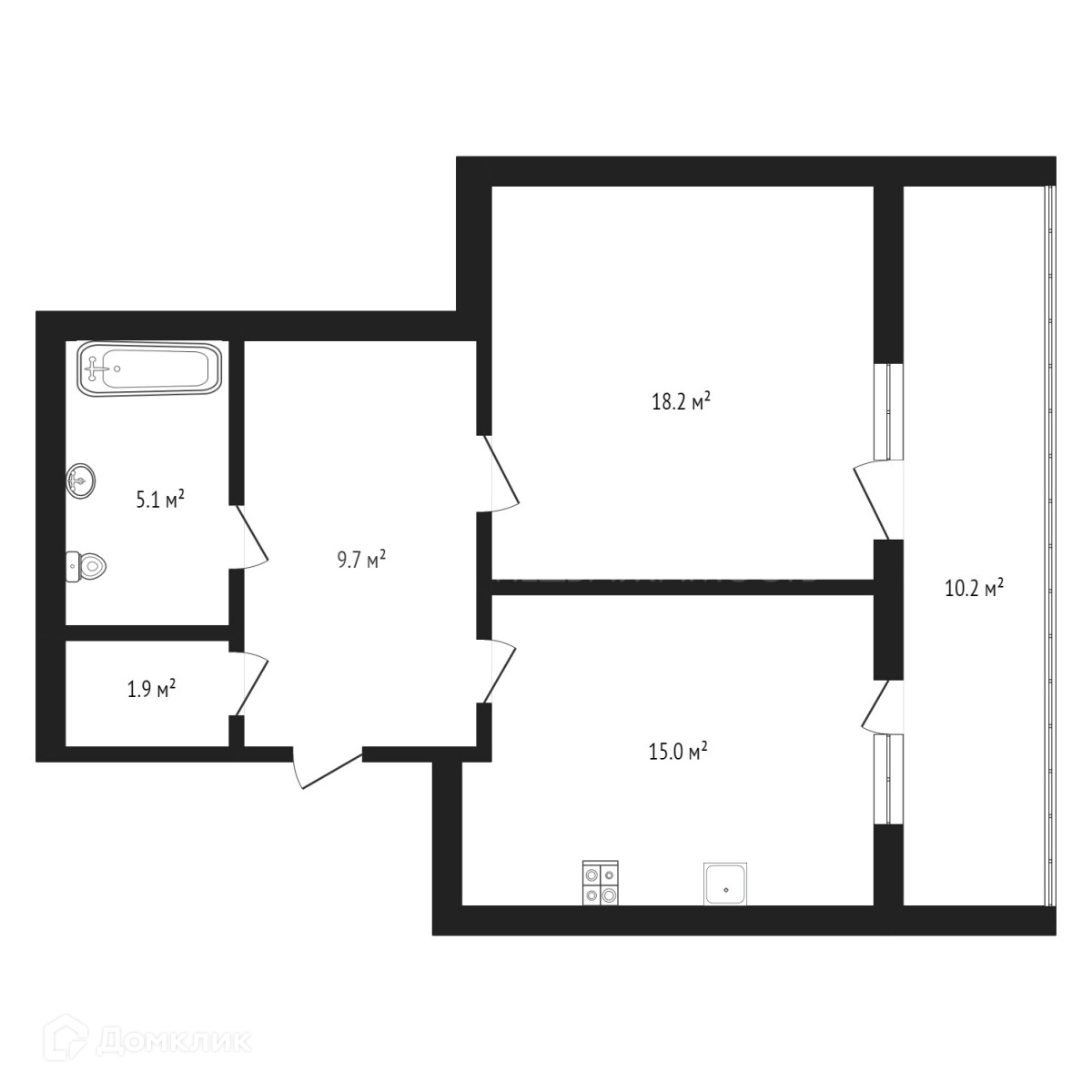 Общая площадь 49.5 м2