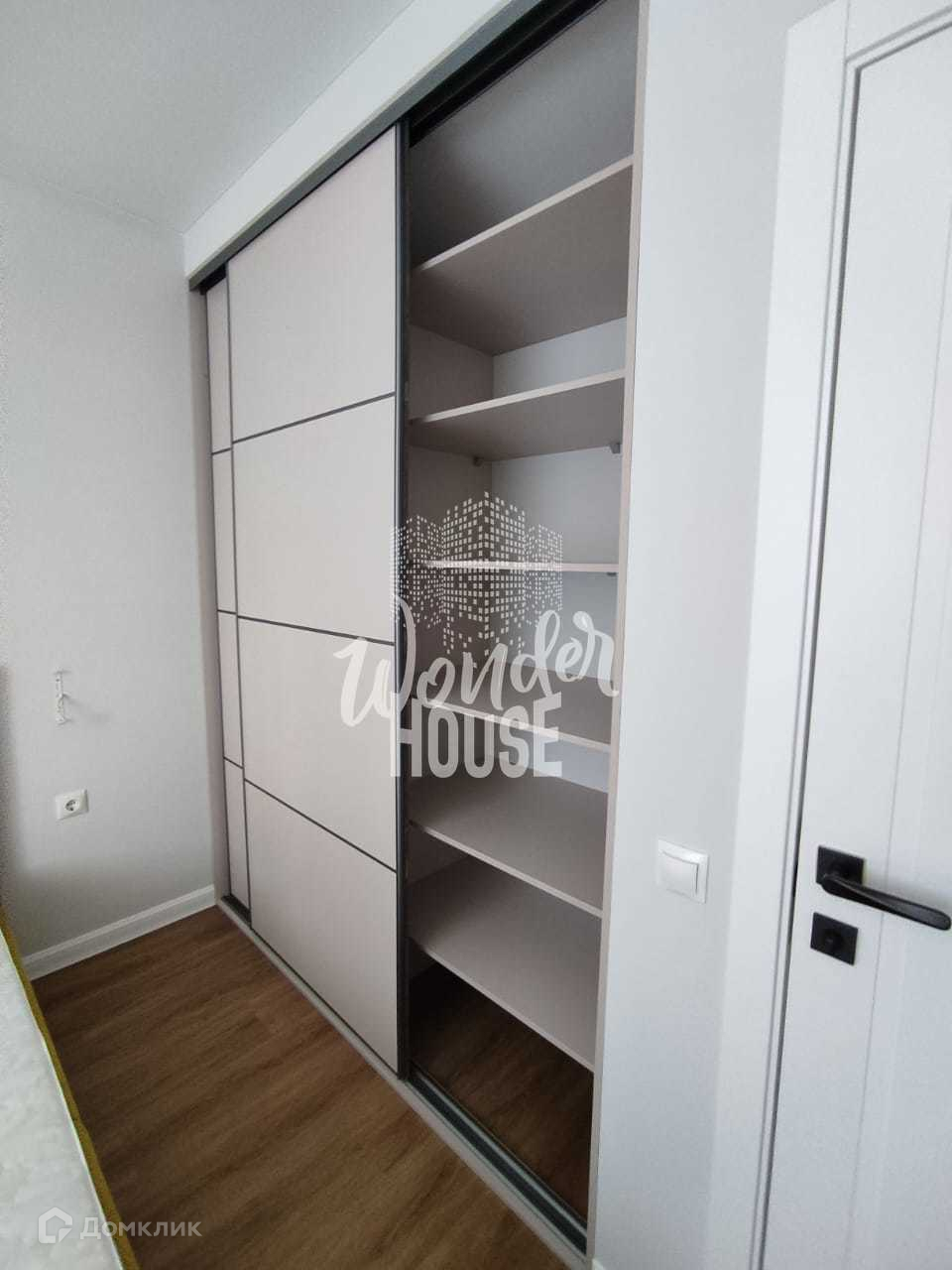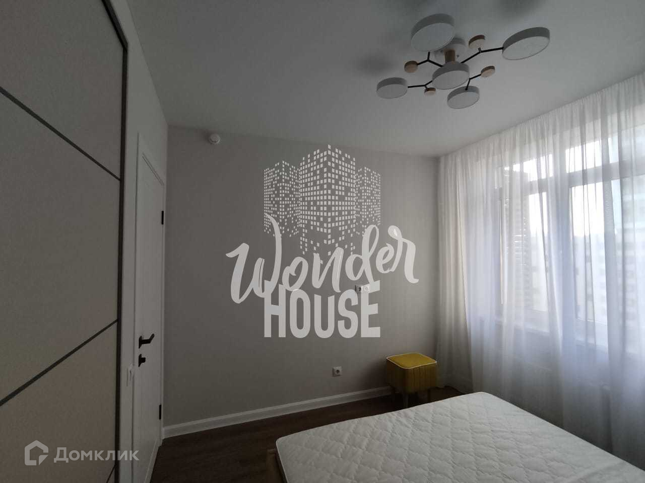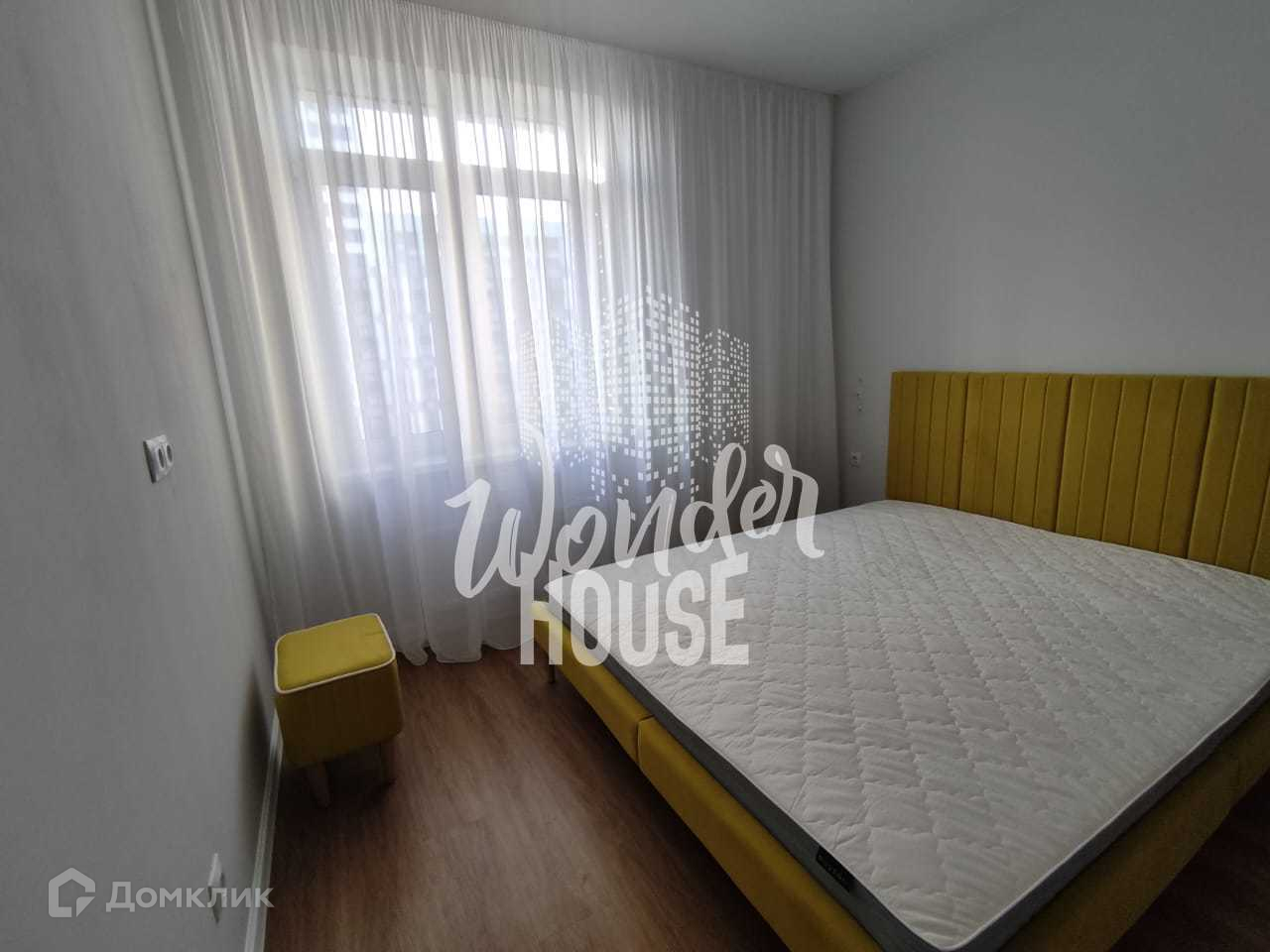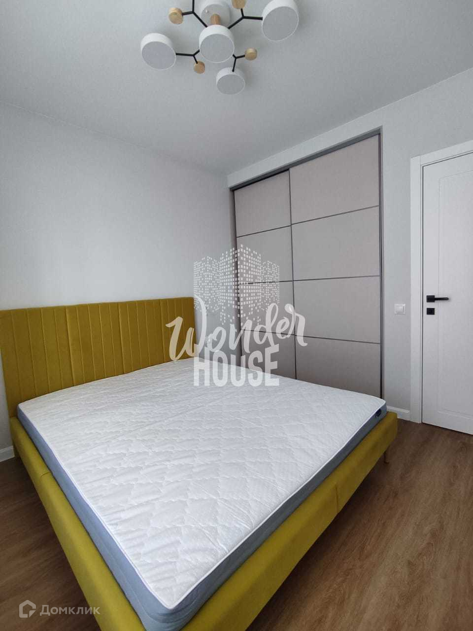 В спальне имеется вместительный шкаф-купе и удобная акцентная кровать желтого цвета. (вся мебель ,что на фото остается).