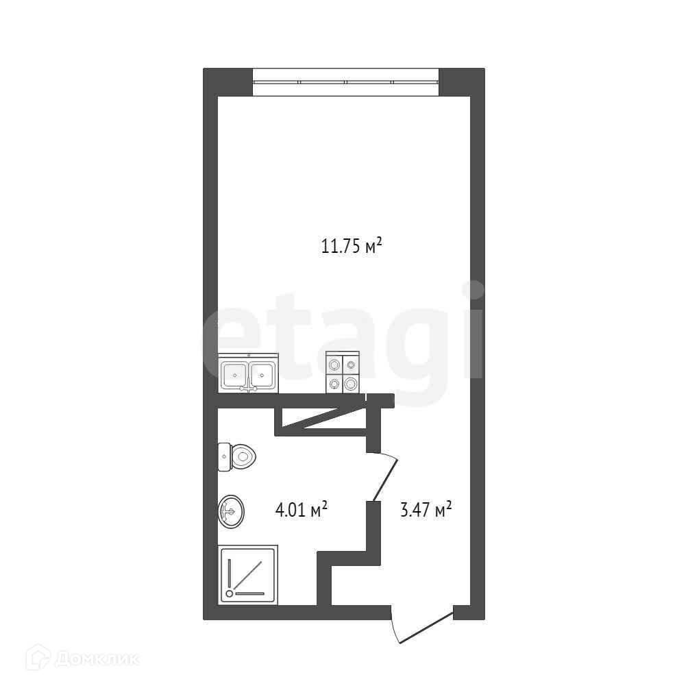 Квартира студия, 19.3 м2, этаж 6 / 12, на продажу в Тюмени, улица Тимофея Чаркова, 87