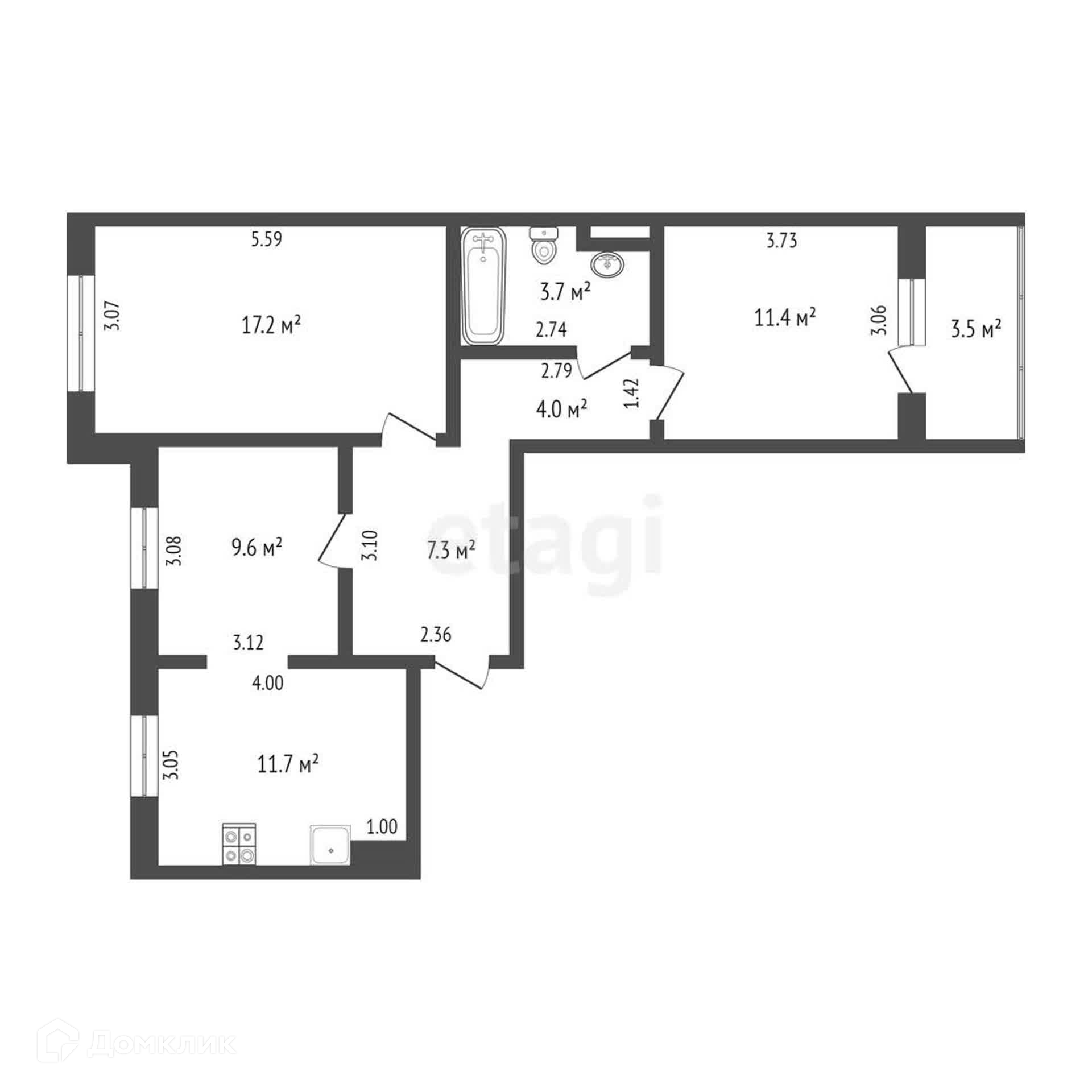 2-комнатная квартира, 65.2 м2, этаж 3 / 10, на продажу в Тюмени, улица Пермякова, 68к2