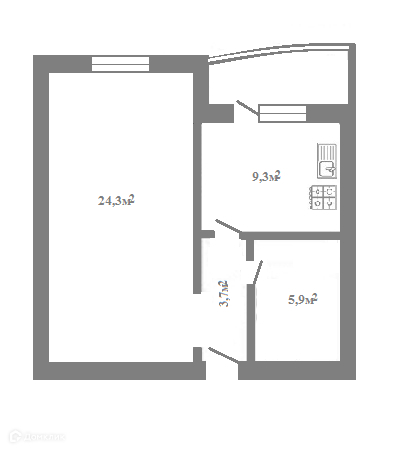 Жилая площадь 24.3 м2