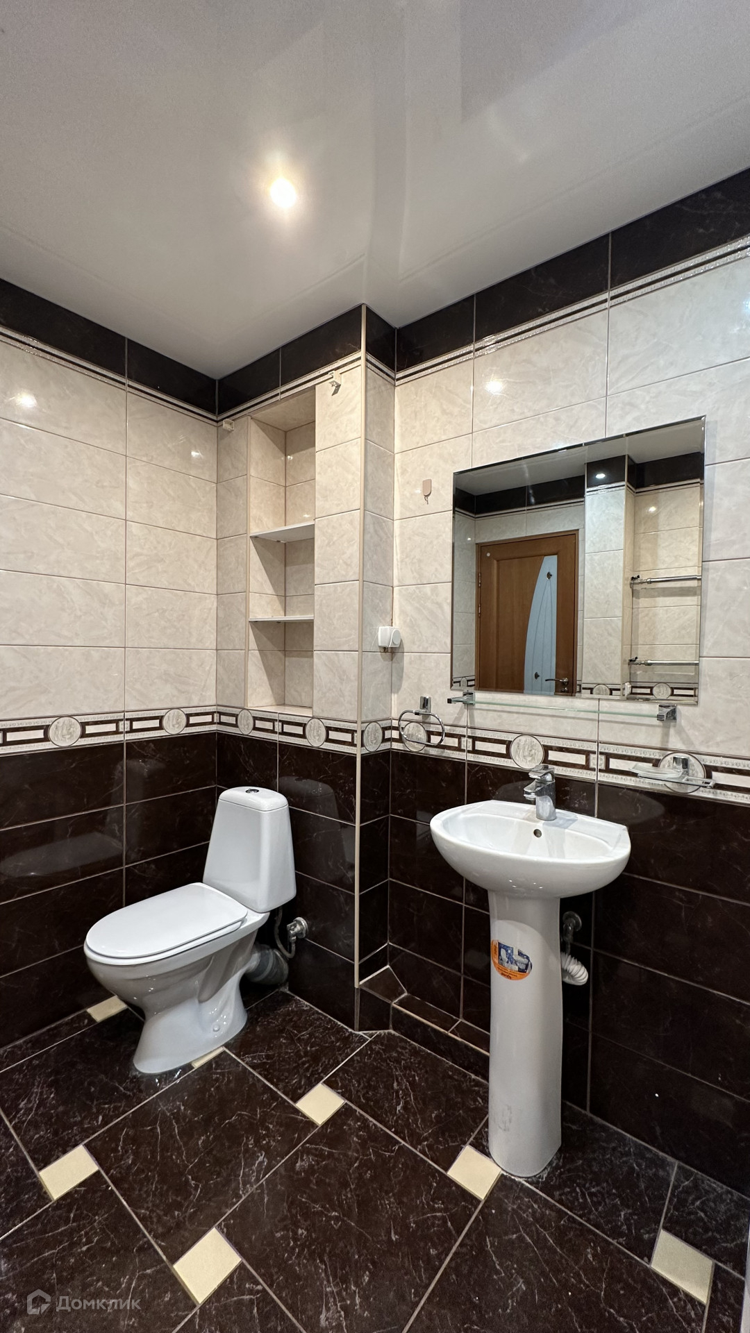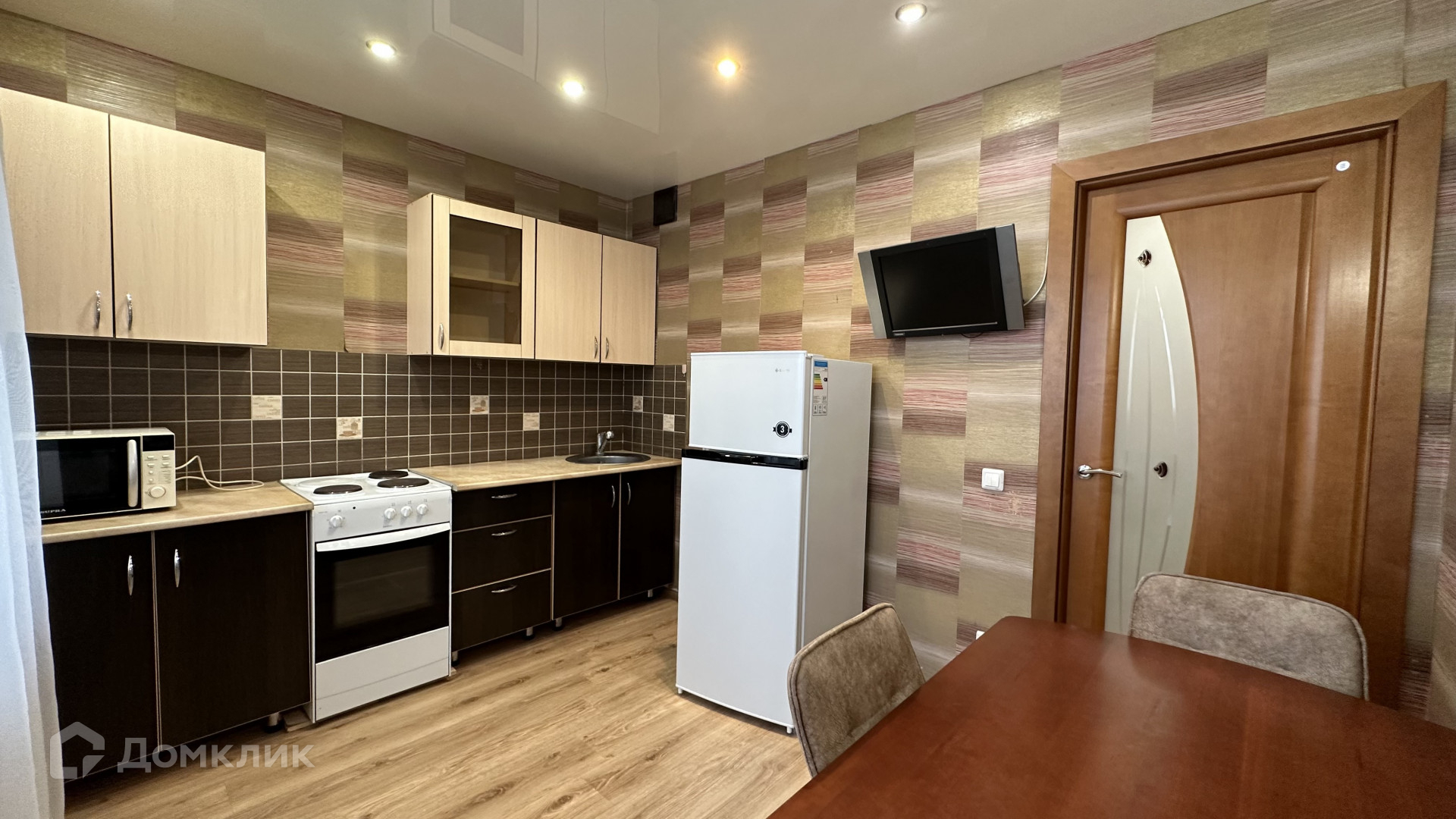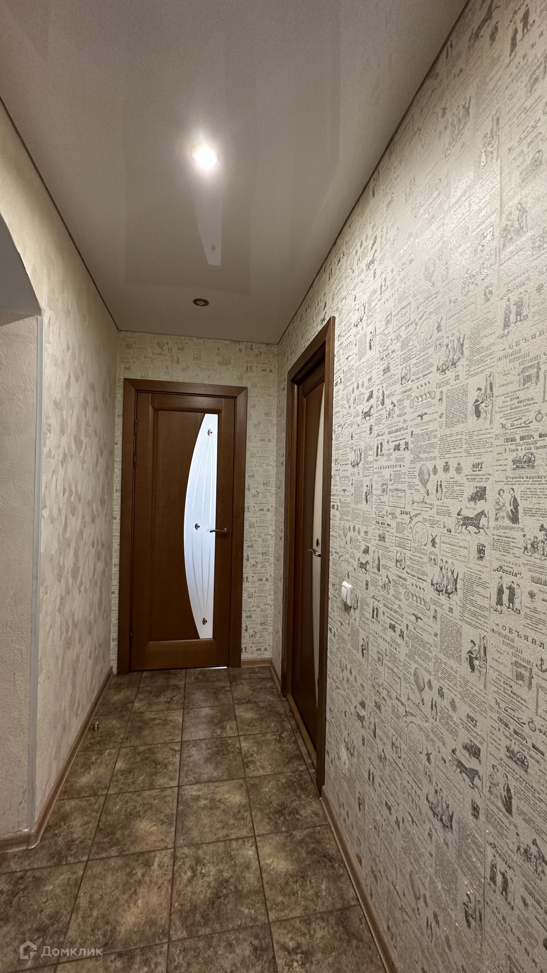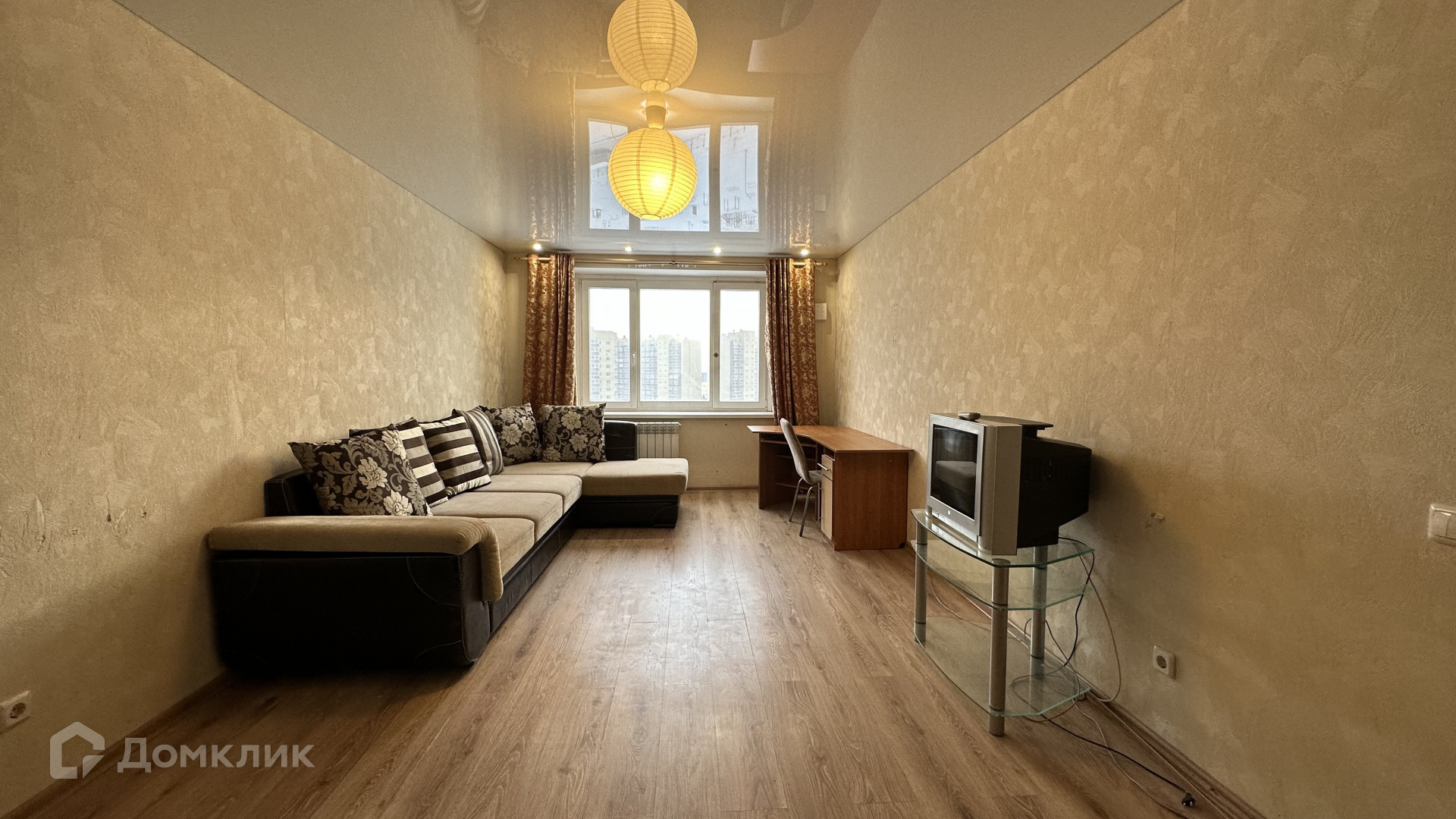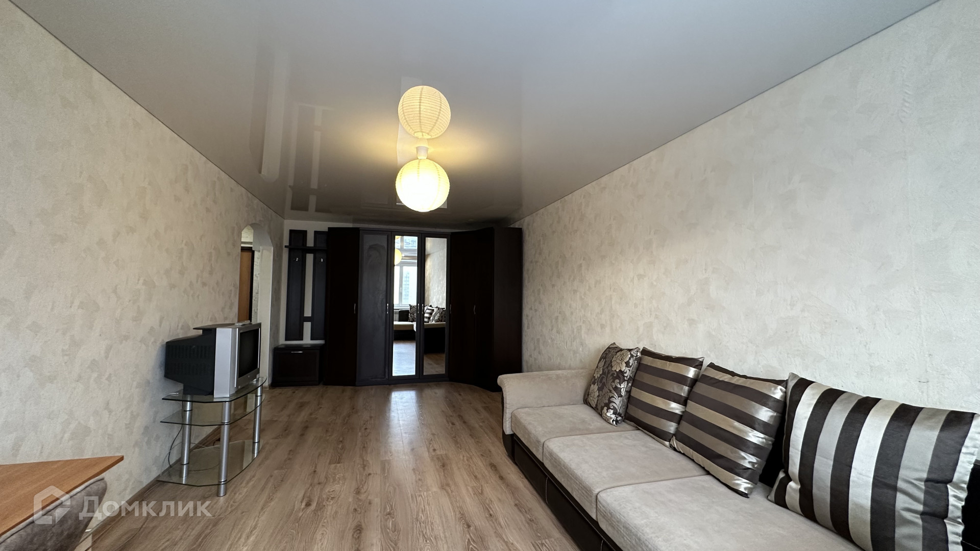 Квартира с косметическим ремонтом: на полу плитка/ламинат, натяжные потолки, обои, санузел в кафеле.