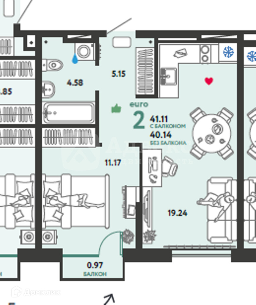 Общая площадь 40 м2