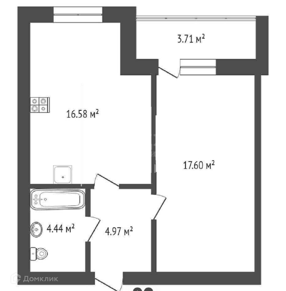 1-комнатная квартира, 45.5 м2, этаж 12 / 16, на продажу в Тюмени, улица Тимофея Кармацкого, 7