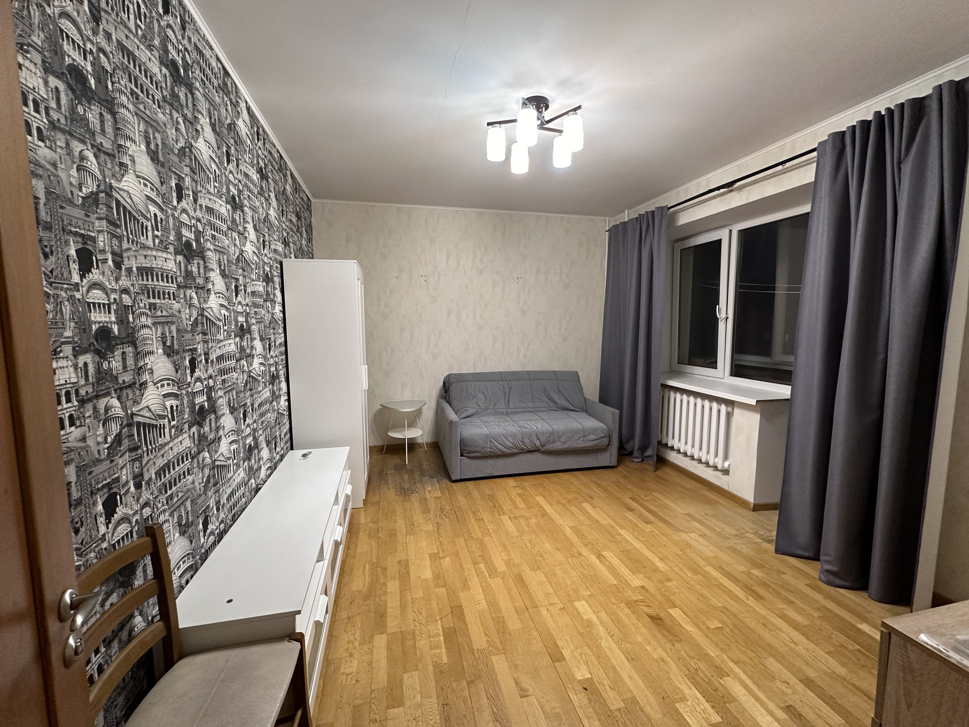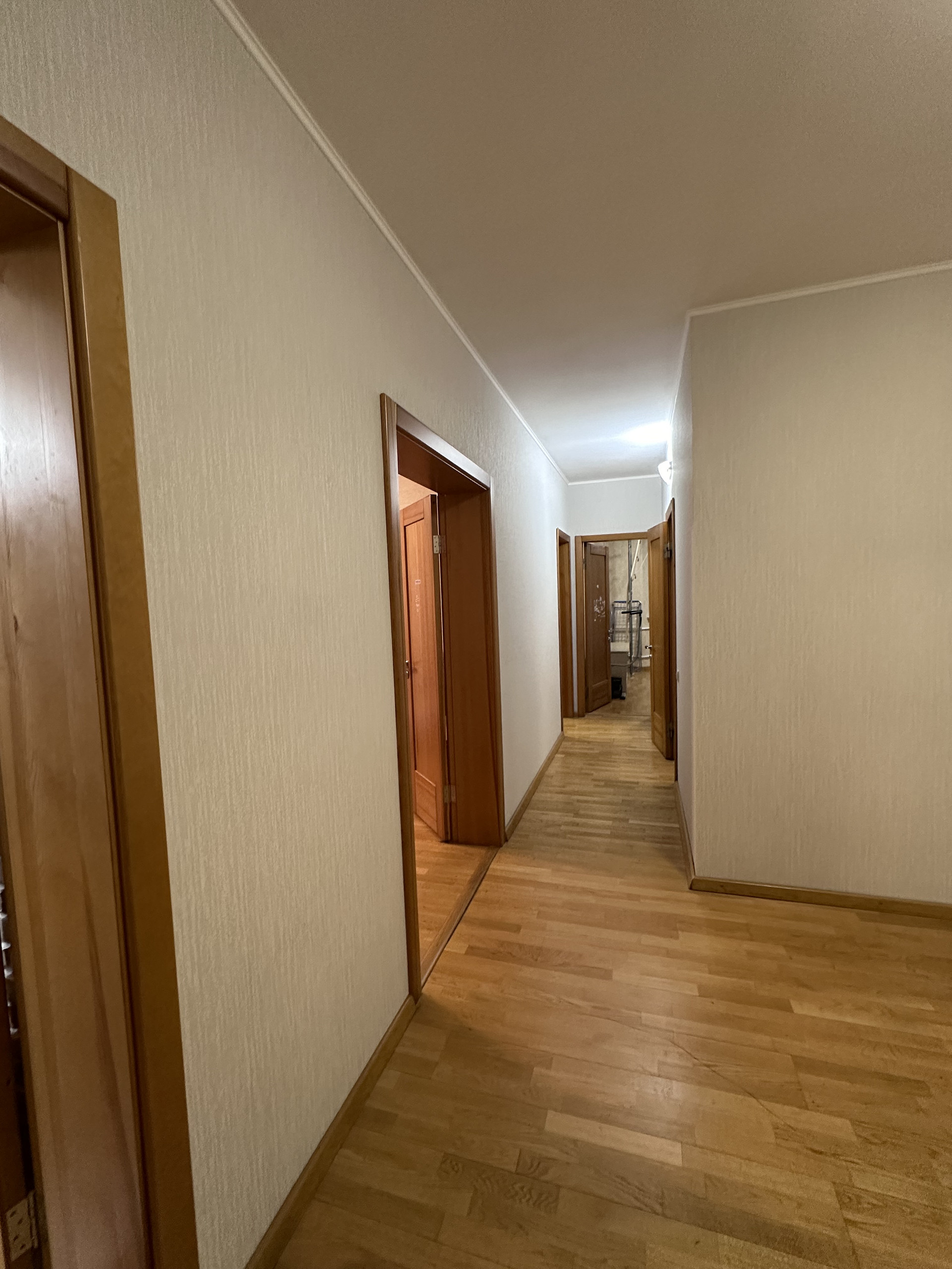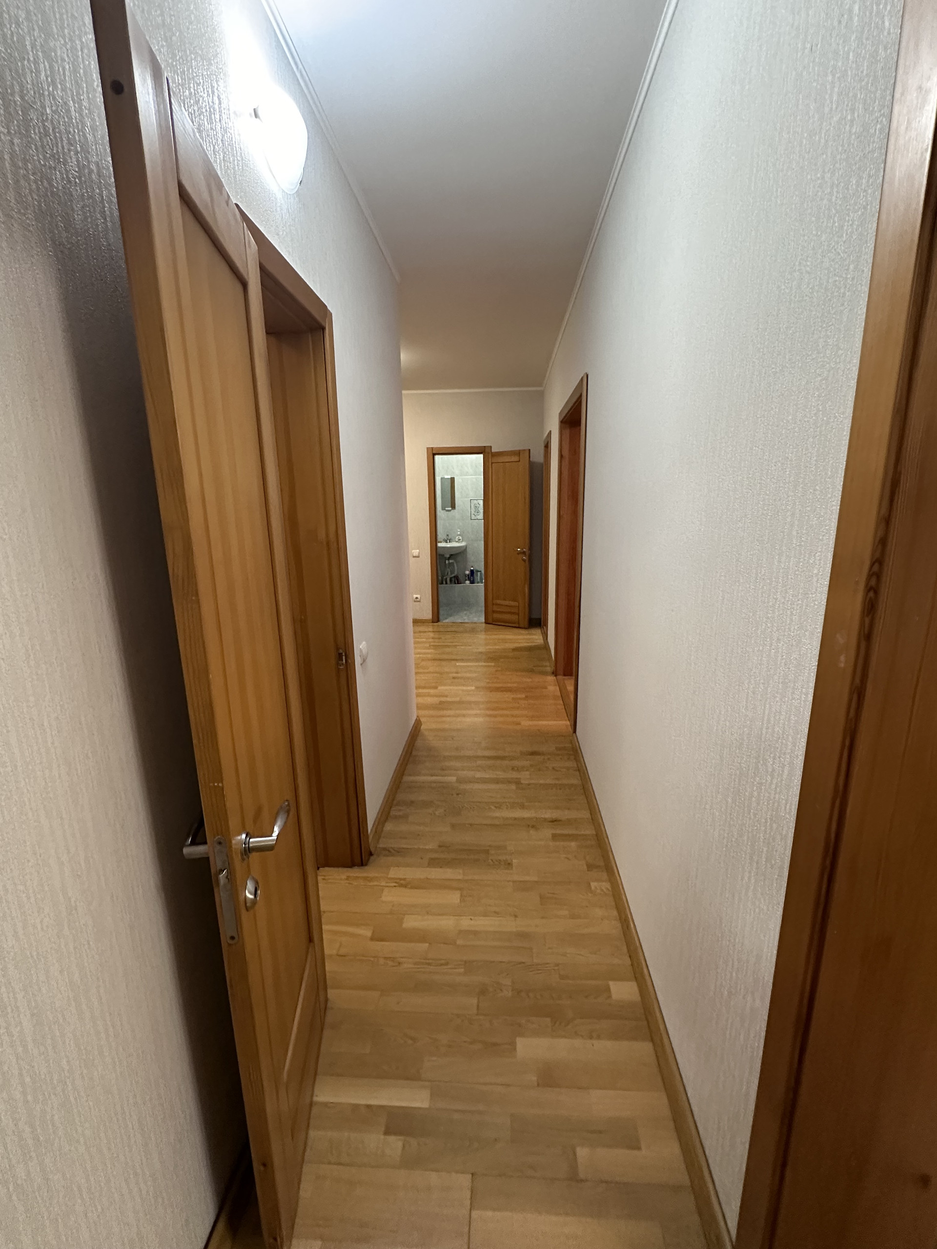 В Квартире требуется косметический ремонт, стены выровнены под маяк, обои, на полу паркетная доска, в санузлах кафель, 3 лоджии, обшиты и застеклены, деревянные двери, входная мультилок.