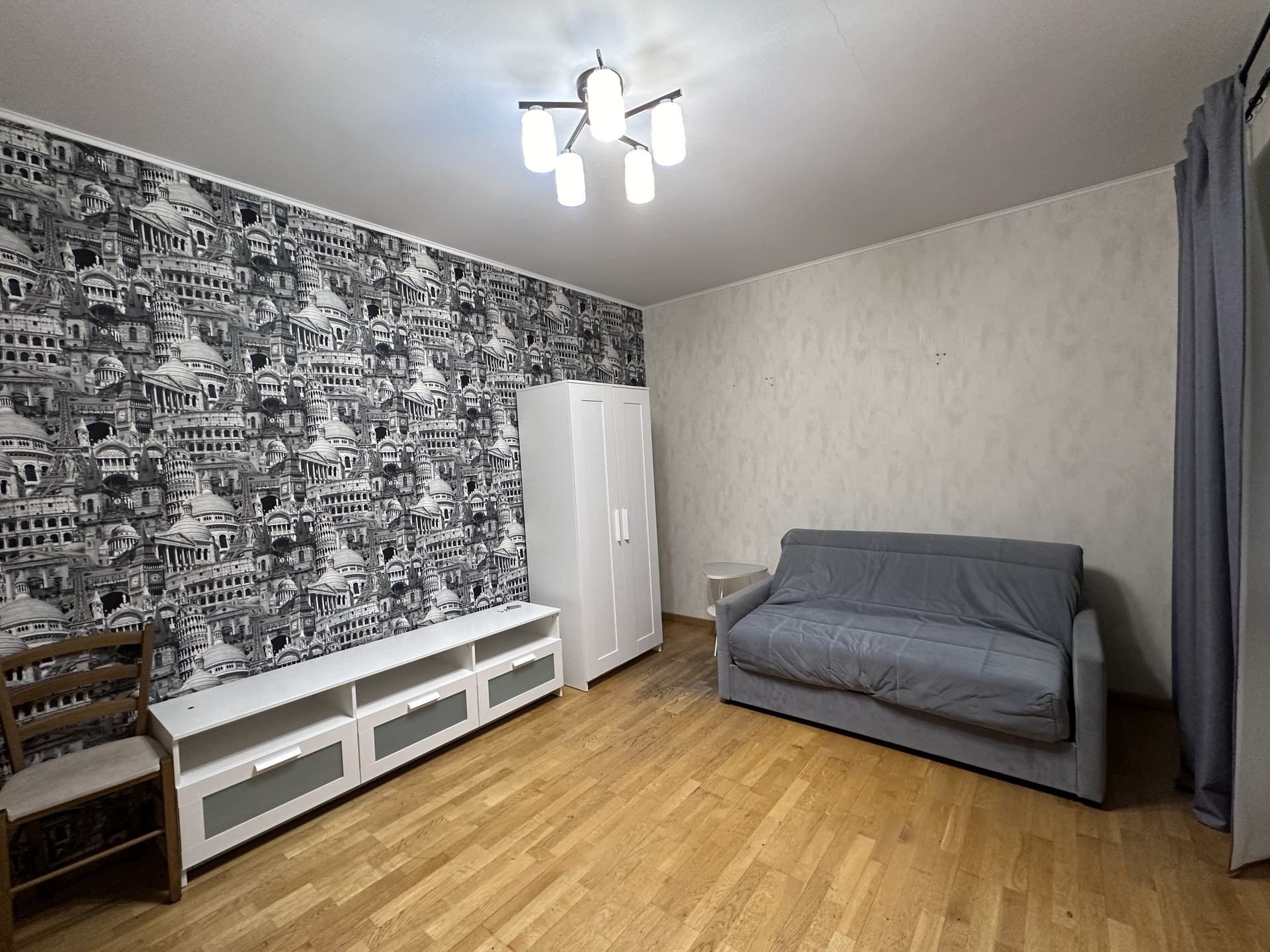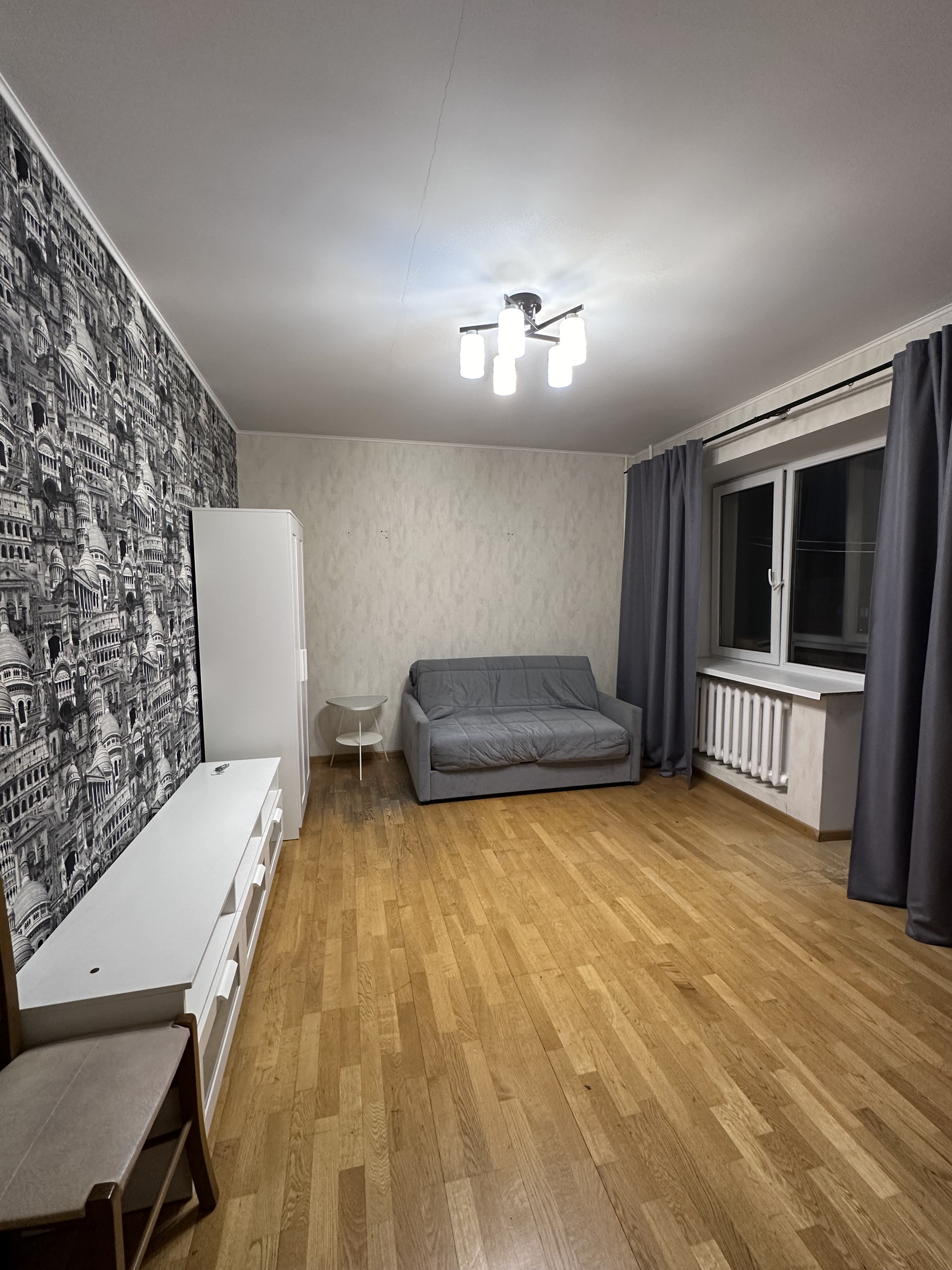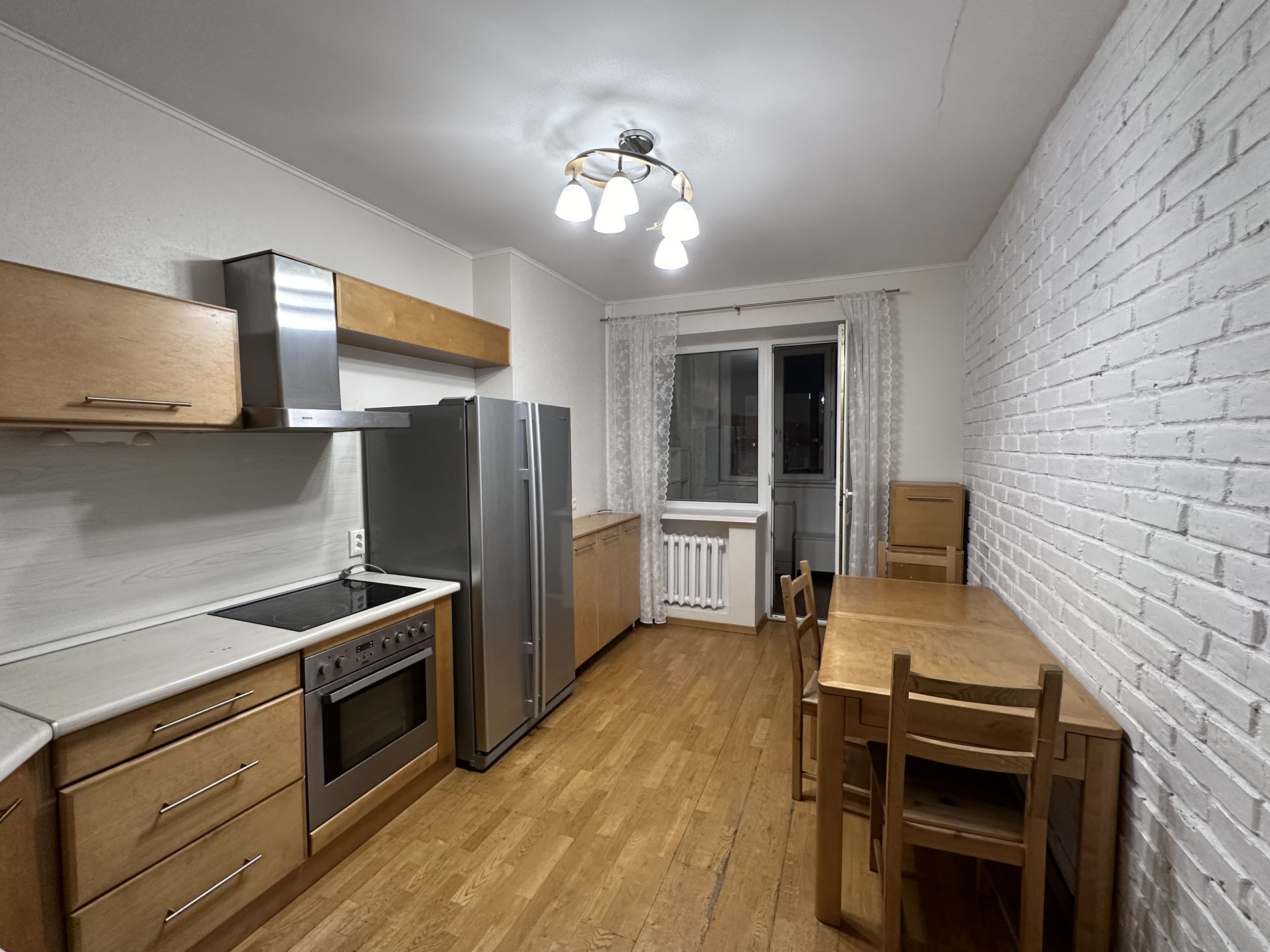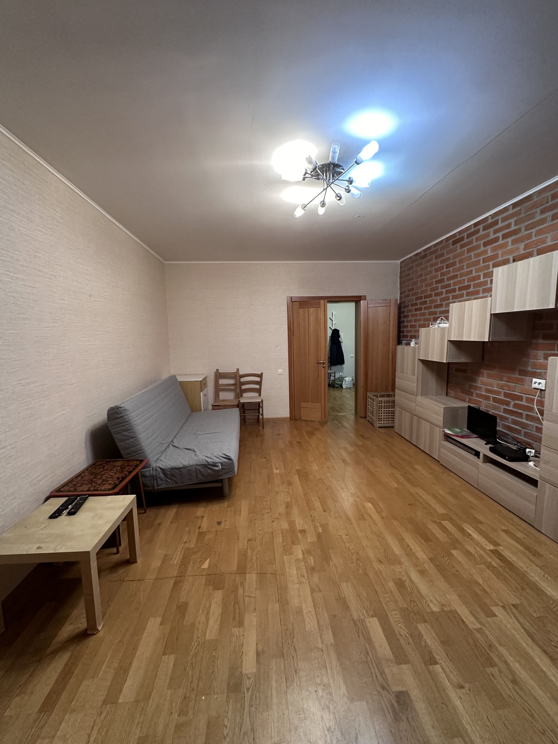 В Квартире требуется косметический ремонт, стены выровнены под маяк, обои, на полу паркетная доска, в санузлах кафель, 3 лоджии, обшиты и застеклены, деревянные двери, входная мультилок.