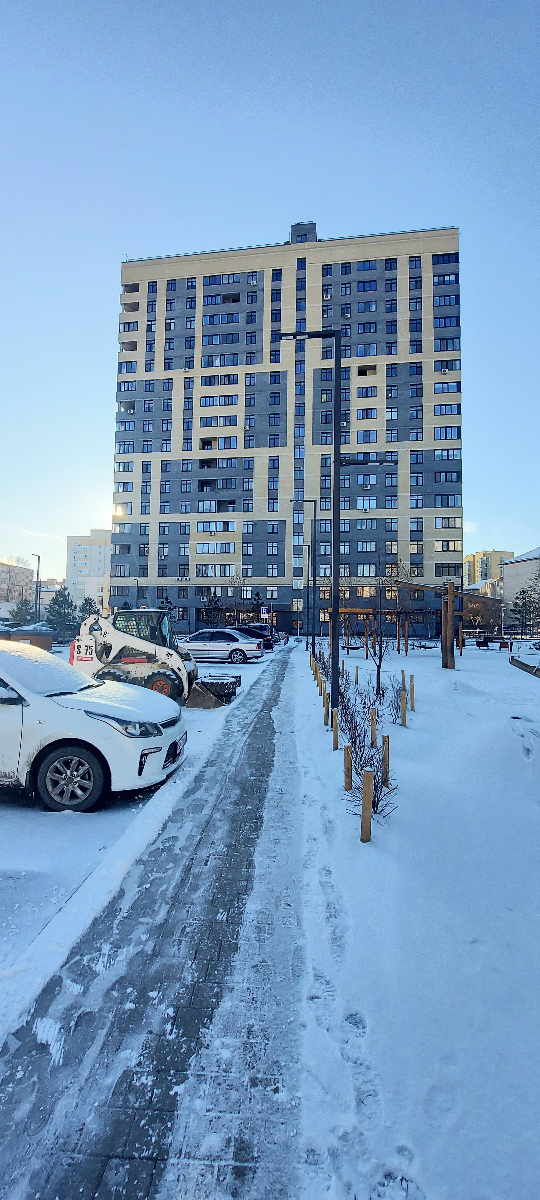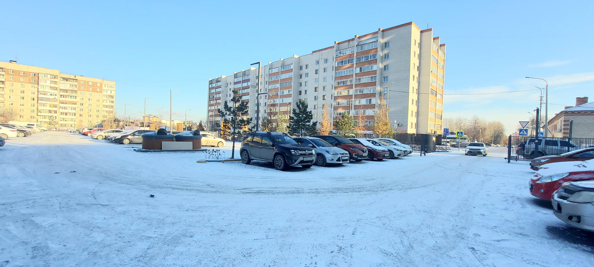 Двор и парковка огорожены забором, детская площадка и площадка для самых маленьких, спортивная зона, камеры видеонаблюдения по периметру и в парадных, теплый тамбур, колясочная, велосипедная, безбарьерный вход в подъезд.