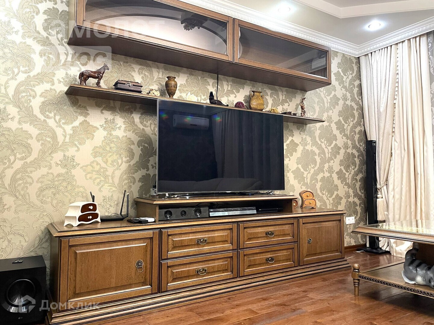 В квартире выполнен качественный ремонт с использованием премиальных дорогостоящих материалов, вся мебель выполнена из массива дуба по индивидуальному проекту, на полу долговечный паркет итальянского производства, плитка на полу кухни также была привезена из Италии по спец заказу. Цвет стен подобран по индивидуальному дизайну в спокойных, сдержанных и благородных тонах.