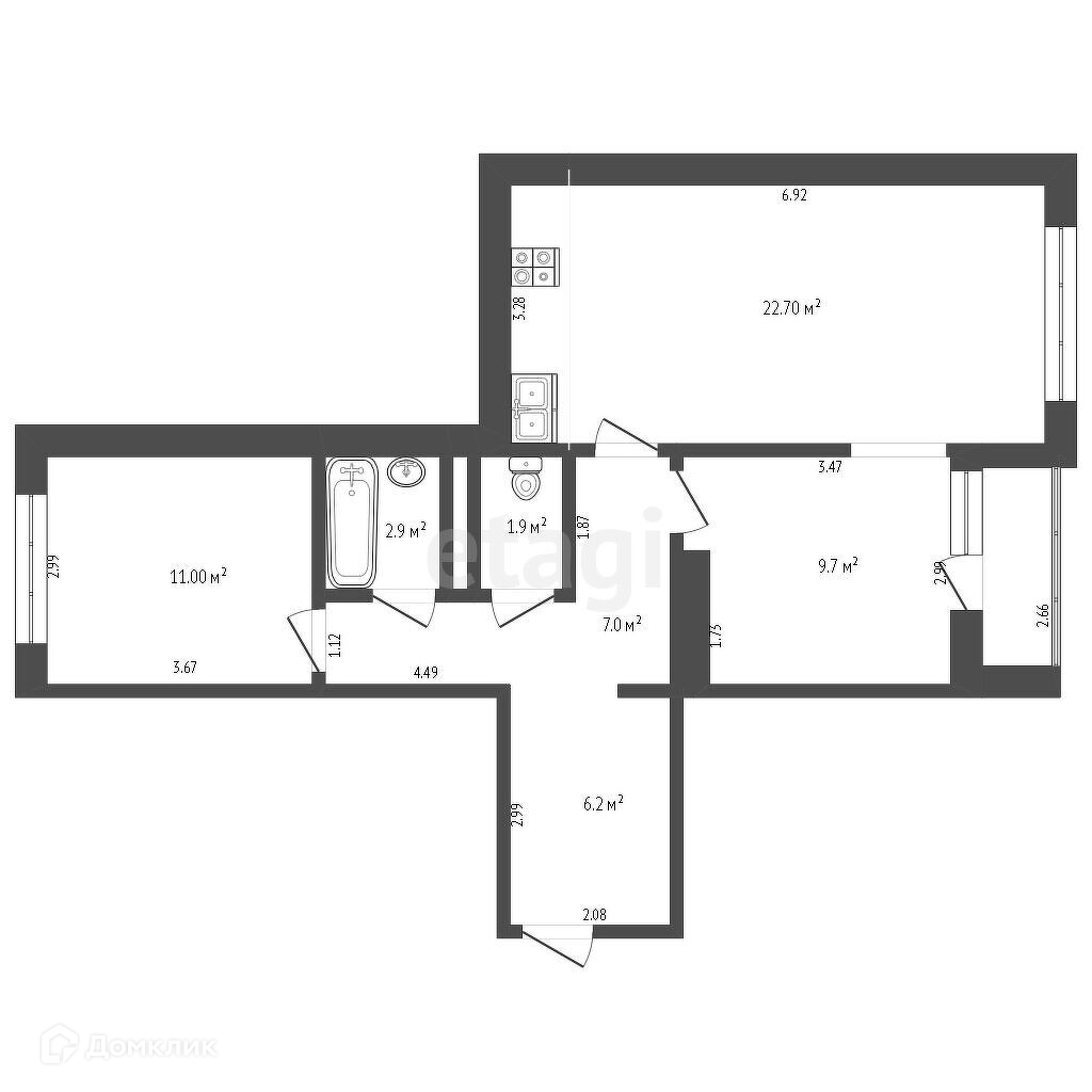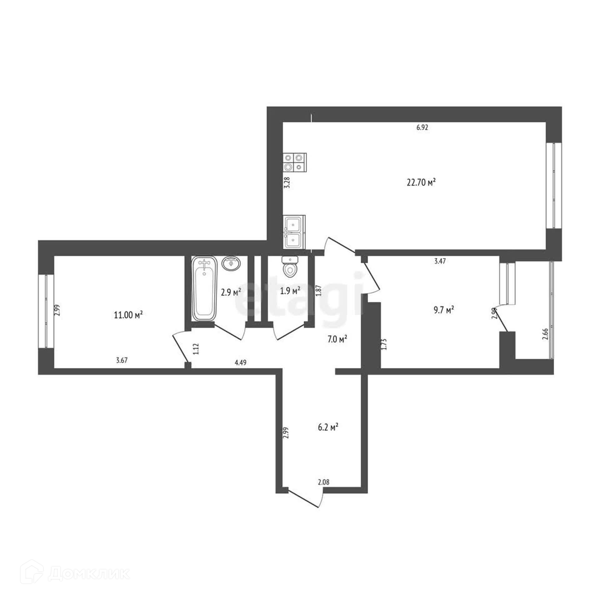 Площадь кухни 22.7 м2